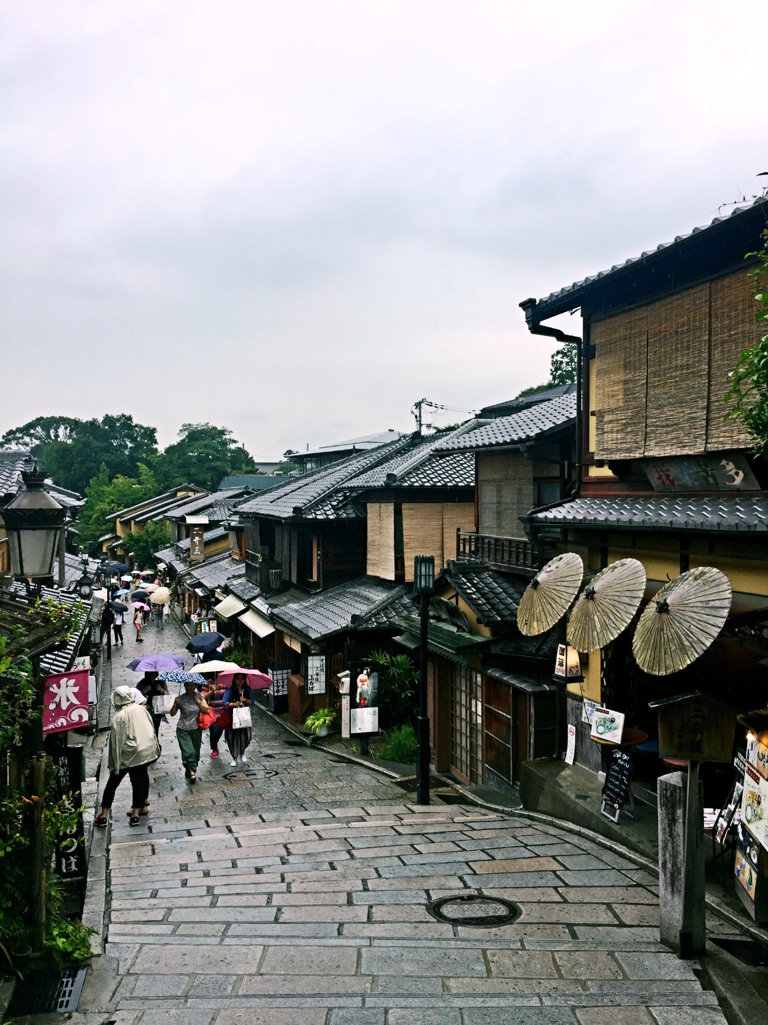 有很多换装和服的妹子在拍照超级美腻,不过下着雨,穿着木屐,又有很多台阶,也是考验功力的。