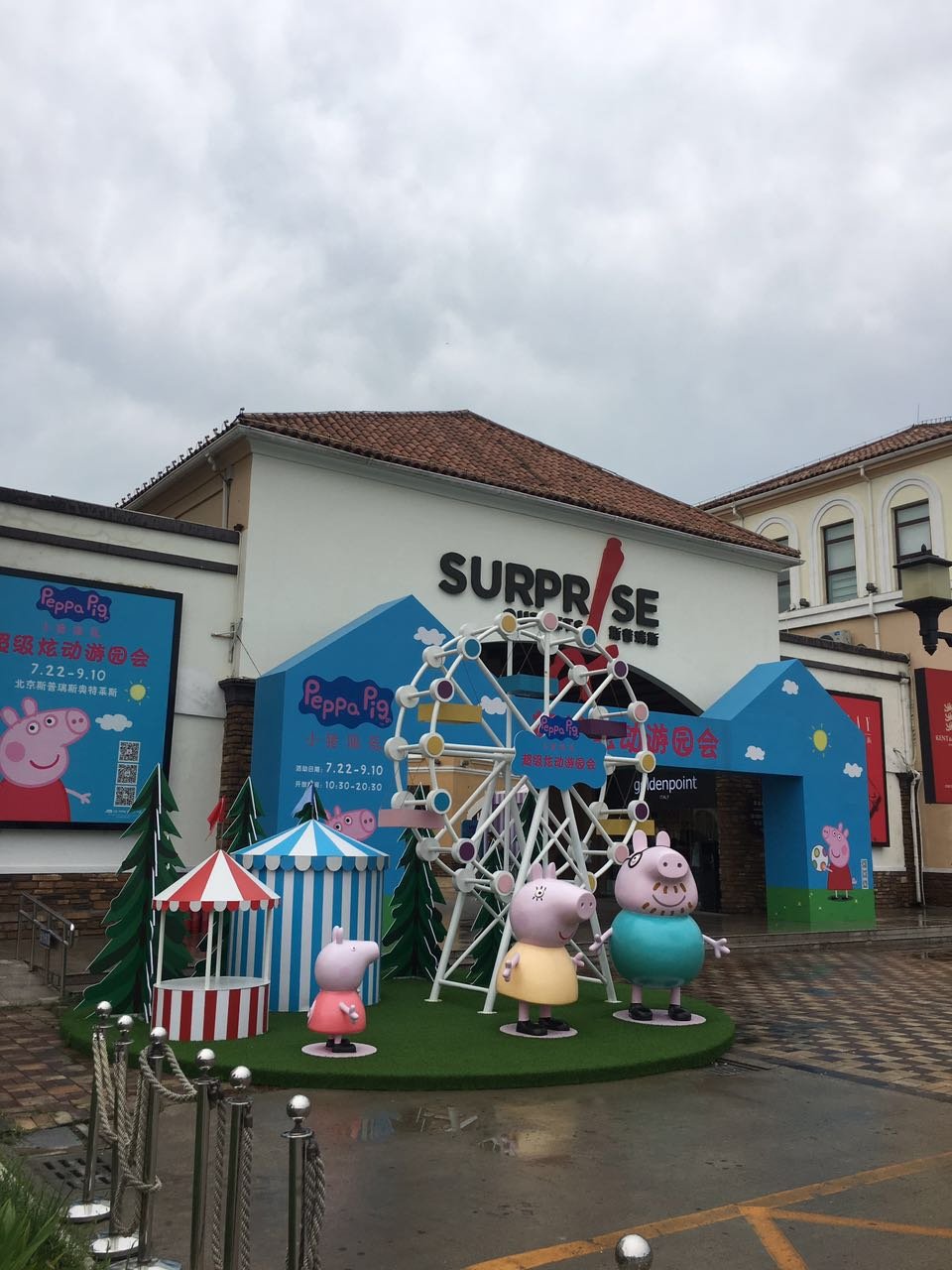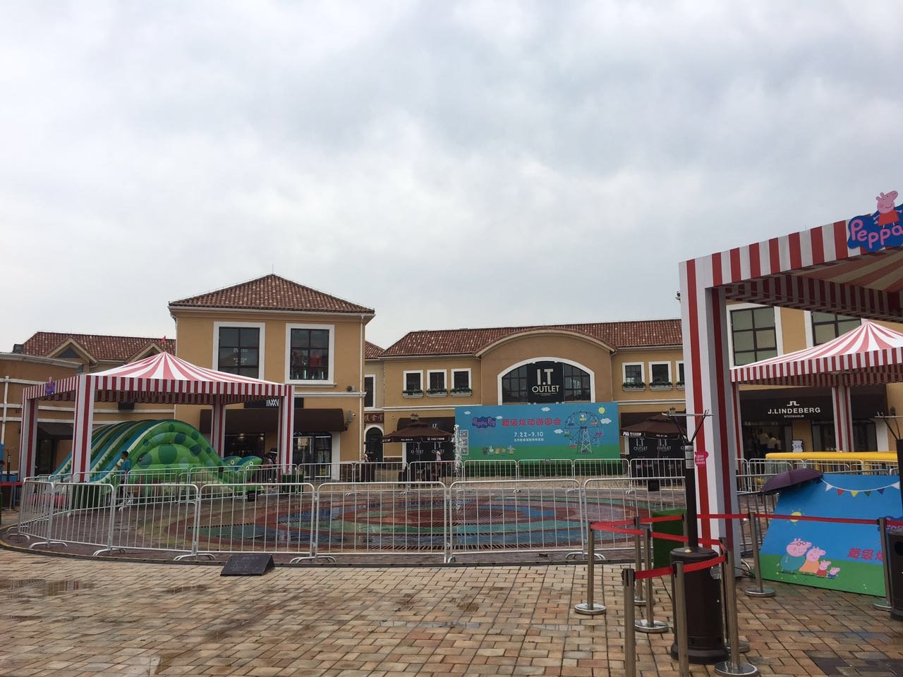 北京现在有好几家奥特莱斯,机场这家经常路过,但是第一次去,先说说奥特莱斯给我最大感触就是停车免费,这让很多担心没地方停车或者停车费很贵的人少了不少担心,位置比较好找,停车场也很大,所以一般情况下都是可以找到停车位的,我们去的时候有些阴天下雨,但是停车场依然有很多的车,但是不拥挤,很现在很多奥莱一样,这个奥莱有很多孩子的主题,周末带孩子来玩的人比较多,我们来的时候正赶上小猪佩奇的活动,到处都可以看到小猪佩奇的标志和一些游园项目,连抓娃娃机里面的玩偶都是小猪佩奇,游园上每一个项目都是15元左右,比较幼稚,适合小孩,我们去的时候玩的人不多,偶尔有玩的看到工作人员也是很懒散的,这个奥莱不算小,但是给我感觉餐饮不是很多,餐厅不多可以理解,就连买水的都相对比较少,不知道谁是我们来的时间不对,我们只看到一台自动贩卖机,购物类运动品牌个人感觉还是比较齐全的也是人比较多的,还有就是儿童区的品牌也是相对多一些的,不过位置在相对的角落里,有一些不好找,我们来这里不是购物,而是现在比较火的一家蹦床馆在这里,所以就顺便来逛了逛,蹦床馆还是不错的,也在阴天给奥莱整体带来了不少的人气,很多的欢声笑语值得推荐,整体感觉很干净,位置不错,可以来转转。