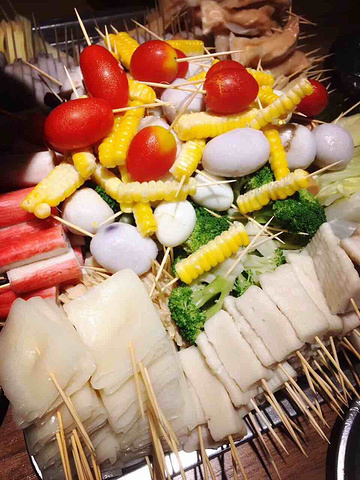 绵阳很出名的小吃,第一天去的时候就被同学带去吃了这个,味道还不错,价格很便宜5毛钱一串,用牙签穿成一小串一小串的,荤菜和素菜都有,还有水果,自助选菜,选好了老板就会给你装到一个盘子里,然后再配上酱料一起吃。