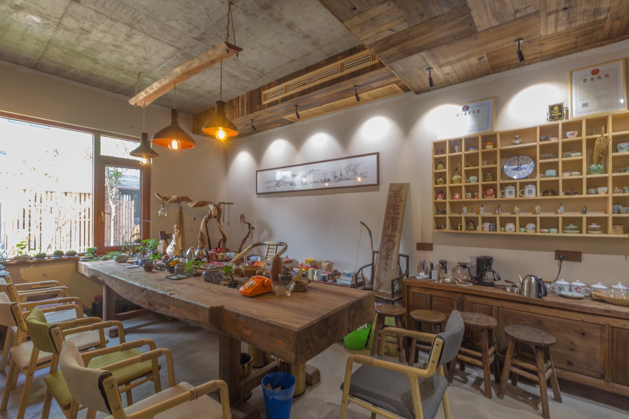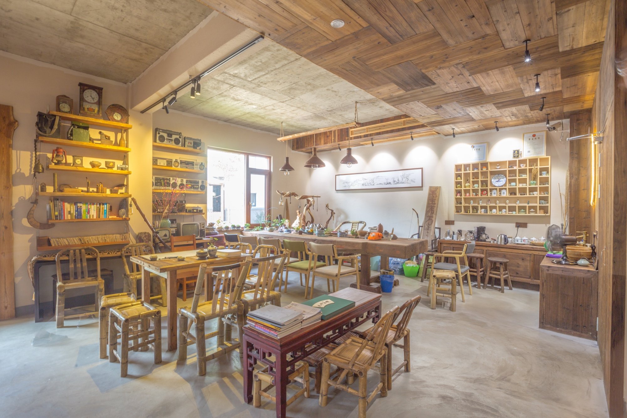 环顾槑缘,全是属于60、70、80的一些童年回忆,吊壶,老式竹椅,古董录音机……等等老物件,都承载着年岁,老板告诉我们这些都是他经过好多年的收藏,好多年的淘过来的。在他看来,过去是回不去的,只能通过这些有趣的东西来回忆。