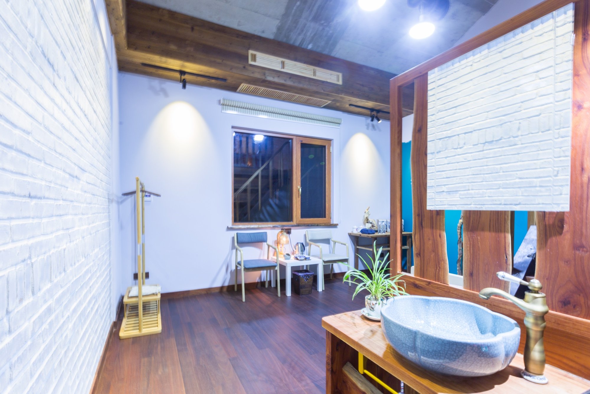 我就问老板:“这是请设计师进行设计规划的吧?”老板微笑着对我说:“是啊,设计师是我”。这里的点点滴滴,小到洗漱品,大到家具配备都是我亲力亲为,很多地方都是经过各种修改以后出来的。
