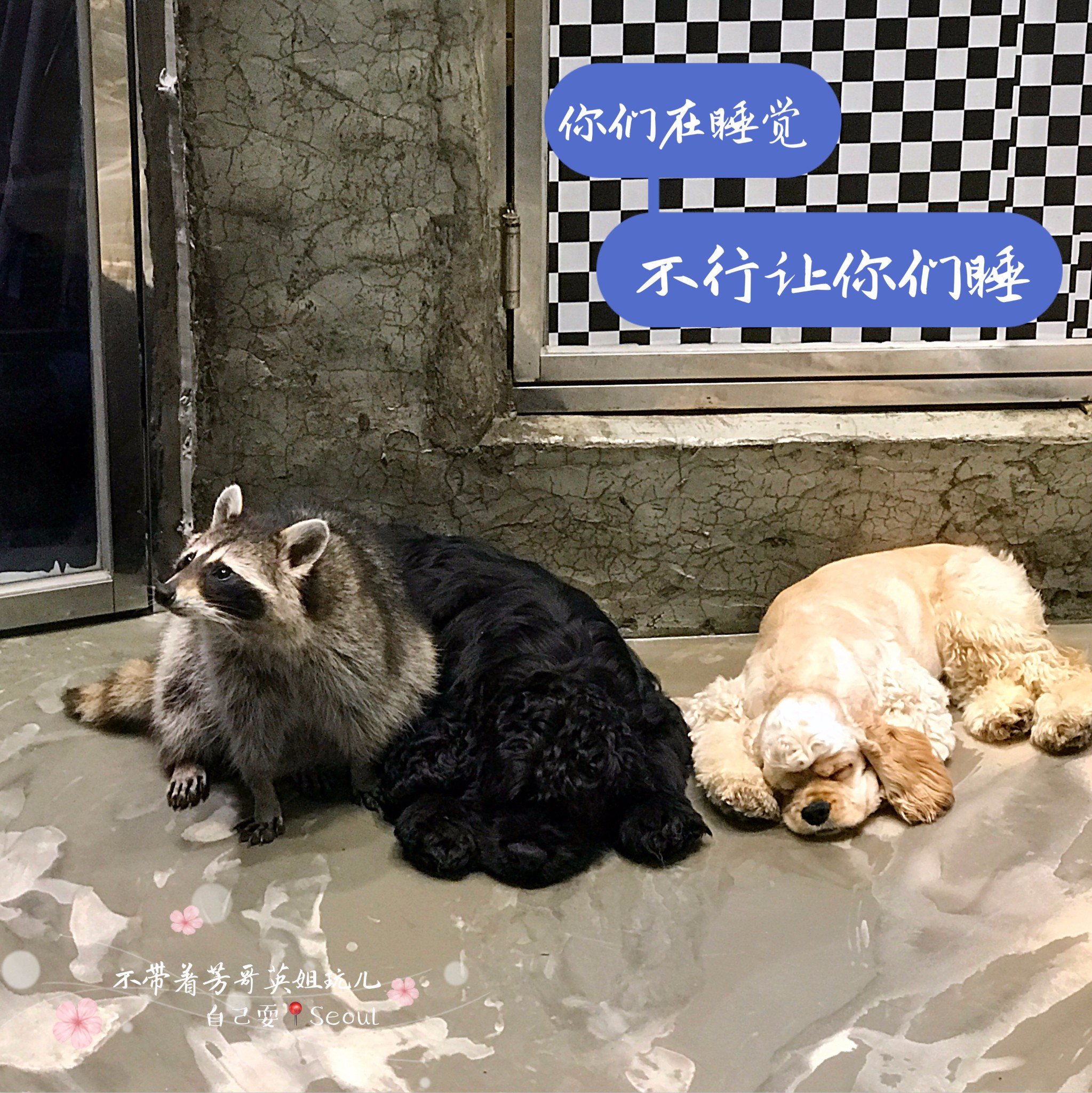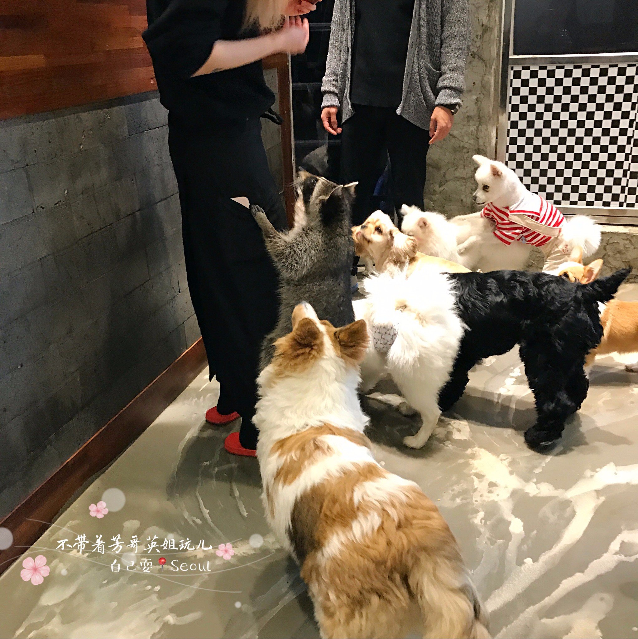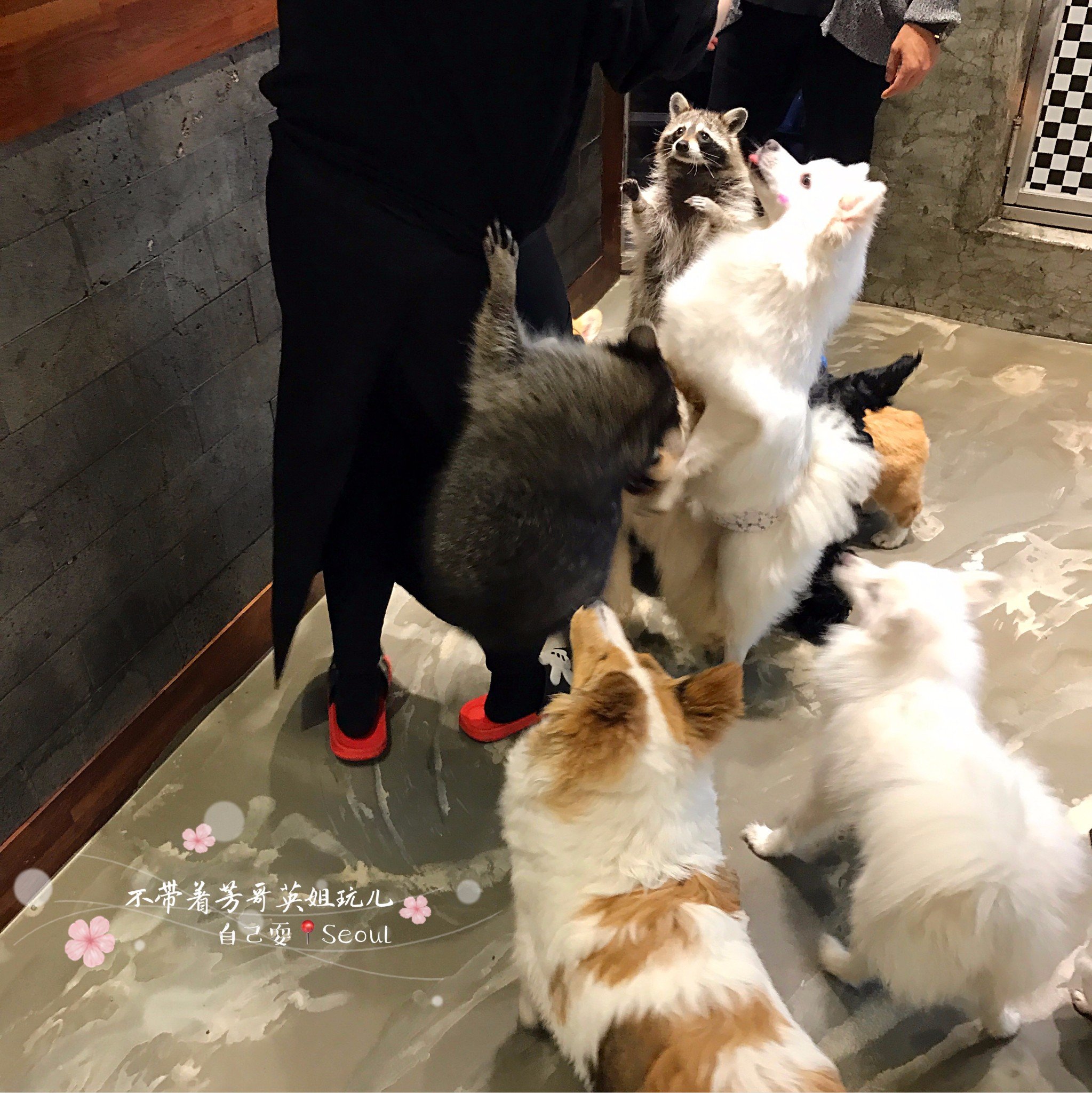 进屋前以为只有几只干脆面,结果一进去,这一屋子,10只左右的小浣熊,还有10只左右的小狗,简直萌翻了,但是他家很重视卫生,隔一段时间就喷清新剂和擦地,所以屋子没有什么味道,这点简直好评!