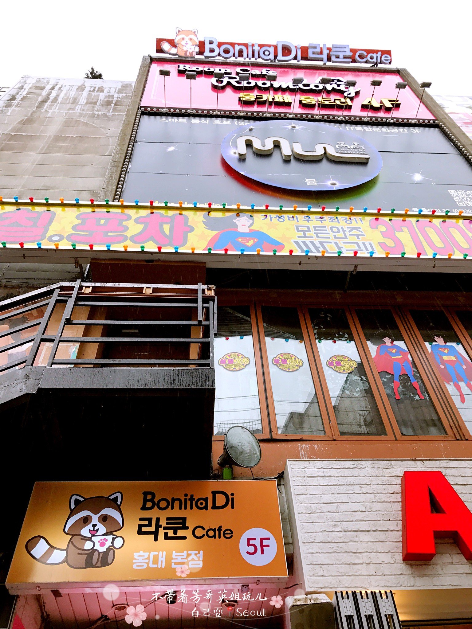 位置:弘大附近 搜Bonita Di cafe 坐电梯上5层就是了!进场需要6000won,但是虽然是咖啡厅,饮料却很便宜1000-2000won,我要的柠檬茶1000won