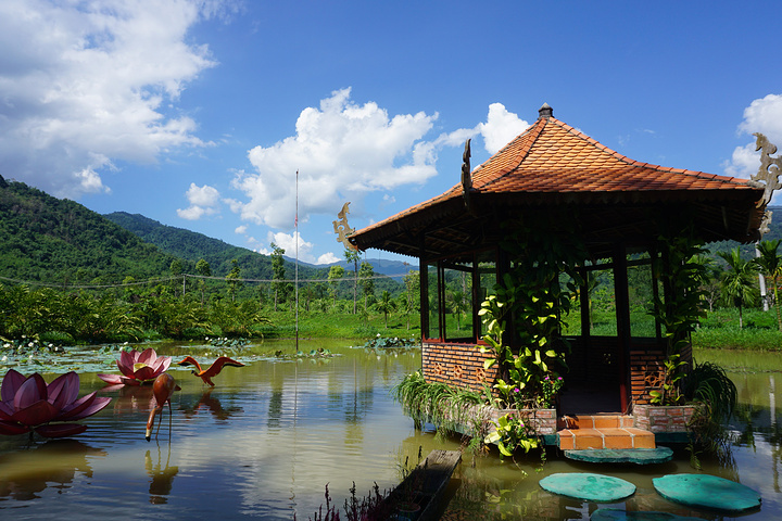 杨贝生态公园是芽庄一日游的一个项目里面的景点。这个一日游客观来说还是相当值得的,因为一是去的人不多,一般如果不是旺季的话都是小团体,但服务质量一点儿都没有下降。大树,鳄鱼公园,温泉,午餐非常丰盛,有鸵鸟肉,鳄鱼肉,鱼肉,而且吃饭的地方还是在湖上,风景特别优美,胃口大开。还有斗鸡,赛猪,孔雀等等可以看,小朋友一定会喜欢。