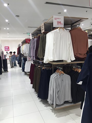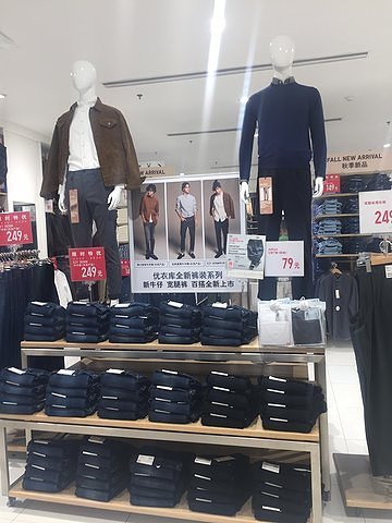 优衣库给我的感觉是店面都很大,没有很拥挤,但是要是碰上购物高峰,试衣排队的时间就会告诉你这家店有多火,不是试衣间不够多,真的是人太多,所以建议大家不要看上一件就着急去试衣服,还是都逛完了,然后把自己喜欢的衣服大概的号码都拿上,这样就不用反复出来再拿衣服,如果人多排队大概试三十分钟左右,因为基本上所有的人都会哪一个筐进行选择,优衣库的购物就是自由自在的感觉,喜欢就买,不喜欢就放在这里没有人会影响你的判断,也不会让你觉得一件你不喜欢的衣服在店员的强烈推荐下不买会尴尬,这一点还不错,每一家优衣库的占地面积都不少,我感觉优衣库的店址开发人员还是挺不错的。首先感觉大肯定是他家的一大特色,其次就想表达他家所在的位置,基本上所有的优衣库堵在商场里,而且都会在很显眼的地方有标志,一般都会在商场的一层,而且周边都很繁华,尤其是餐饮业,所以经常我们会在商场里吃完饭之后如果看见优衣库的话一定会去里面溜达一圈,不管有没有想买的,都会去转转,其次觉得他家店里的设计虽然没有什么特别大的特色,但是干净给人一种很舒服的感觉,所以让人看什么东西也都会心情舒畅,而且虽然人多但是不拥挤,而且价格合适,适合各类人群购物选择,值得推荐。