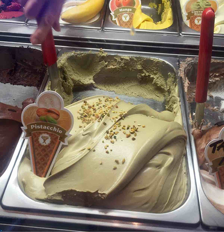 点了巧克力和开心果味的冰淇淋,特有的意式冰激凌Gelat的口感浓郁厚实,喜欢开心果味道