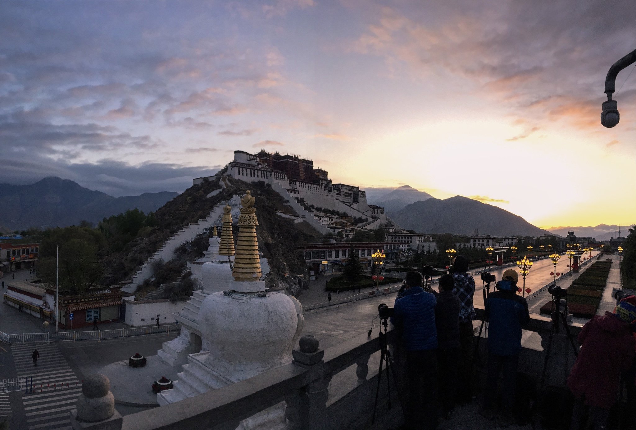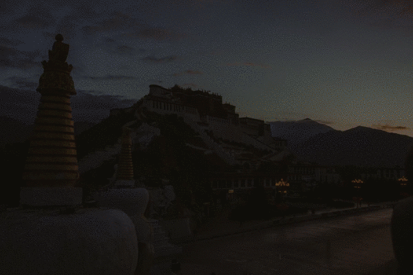 云层迟迟没有散开,预计七点出头的日出时间一直拖到快八点,阳光才把布达拉宫打亮。