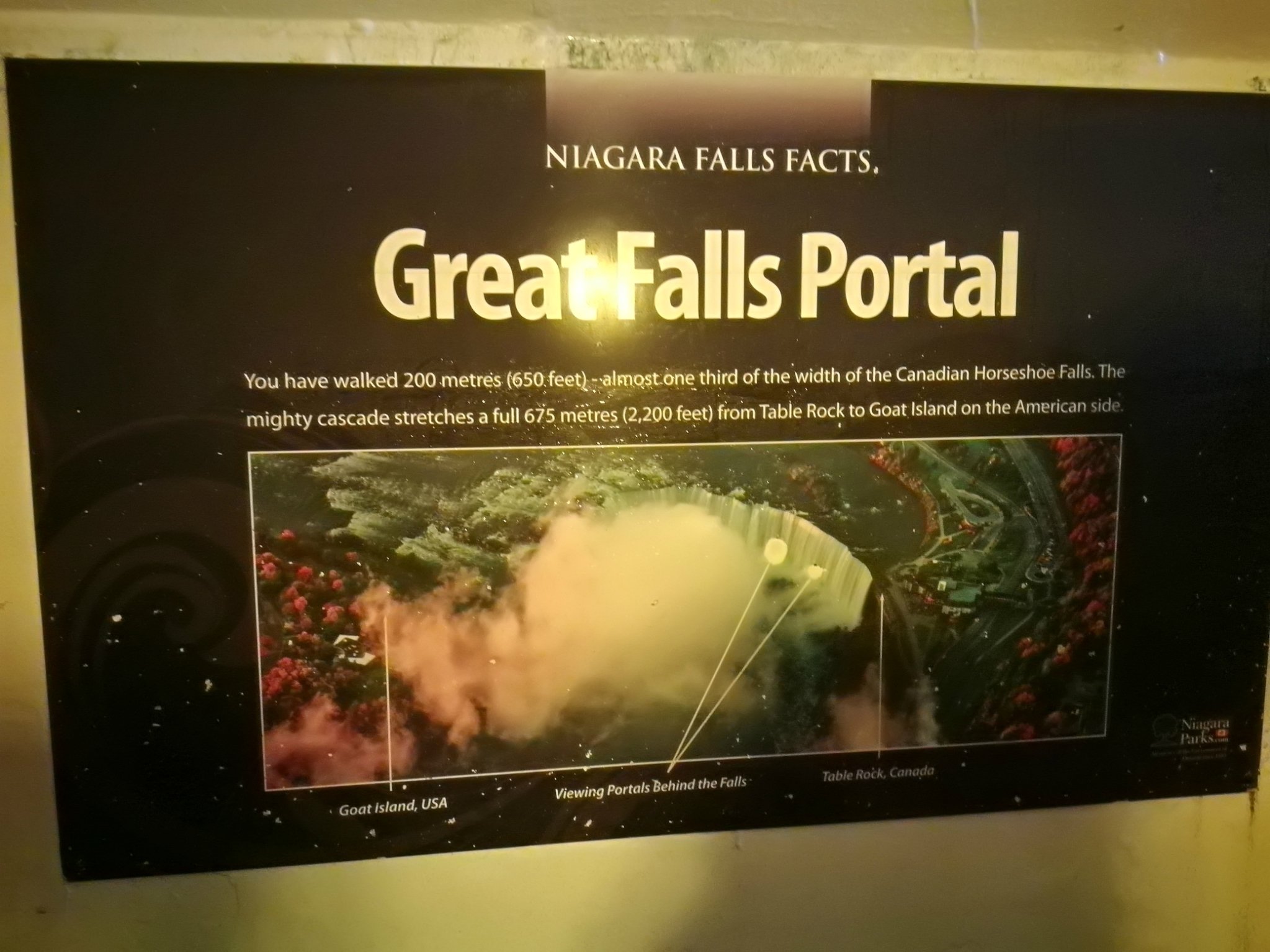 Behind the fall隧道观光是在尼亚加拉河床下开凿隧道从瀑布后方看瀑布的观光方式。里面有几个分支隧道分别在瀑布的不同位置开孔,可以体会瀑布的水量和惊天动地的声音。由于是逆光其实拍不到什么。