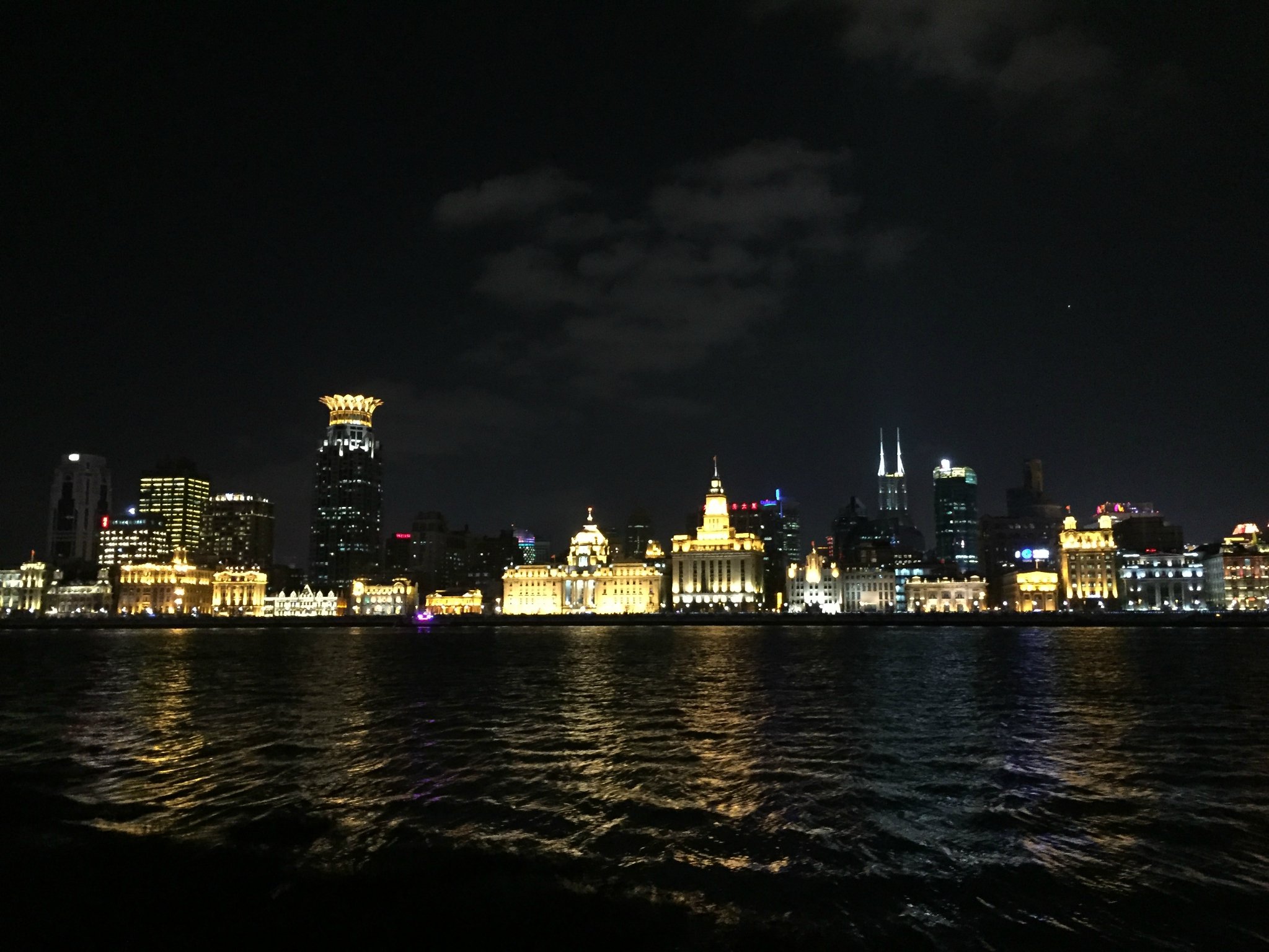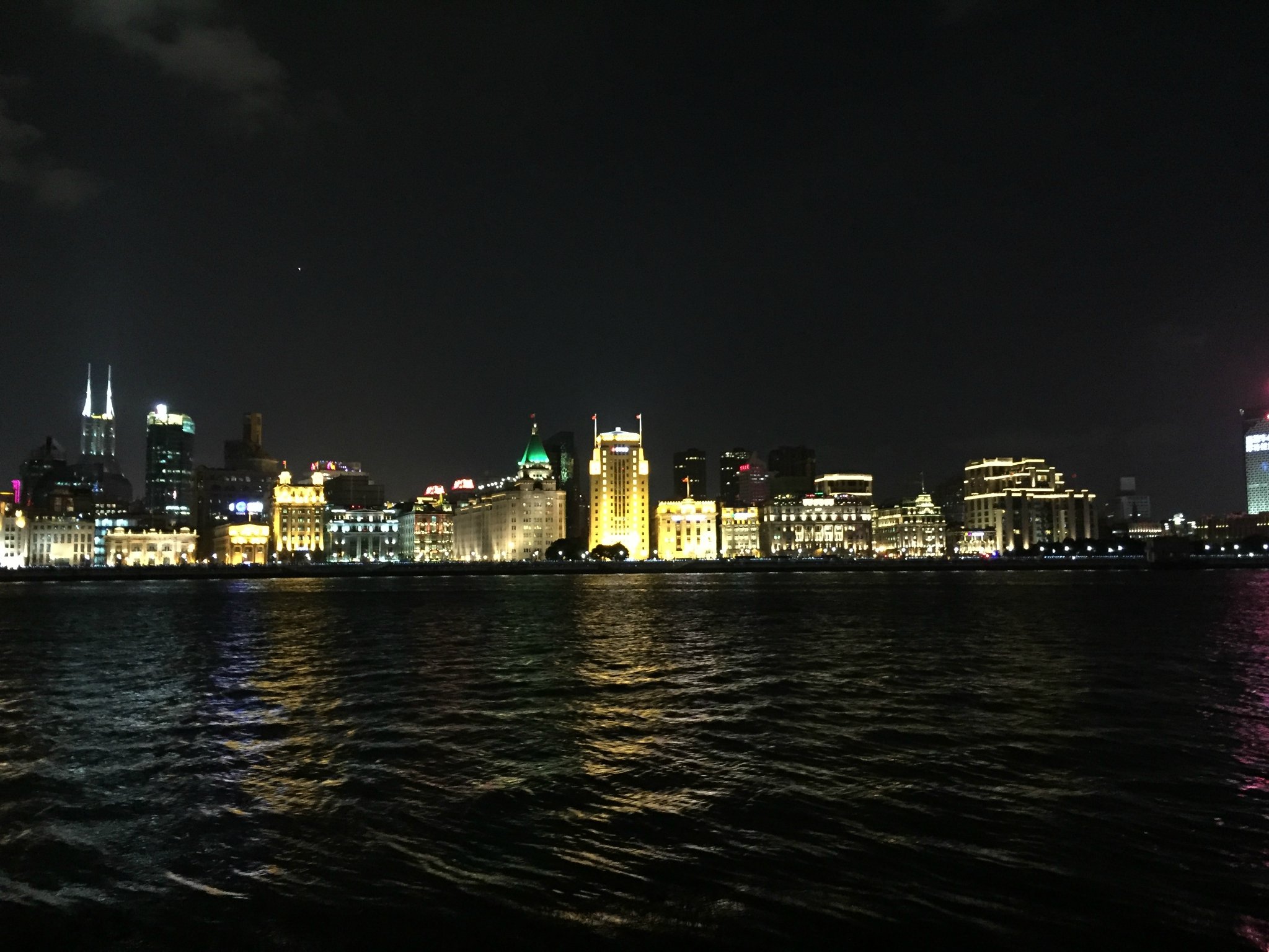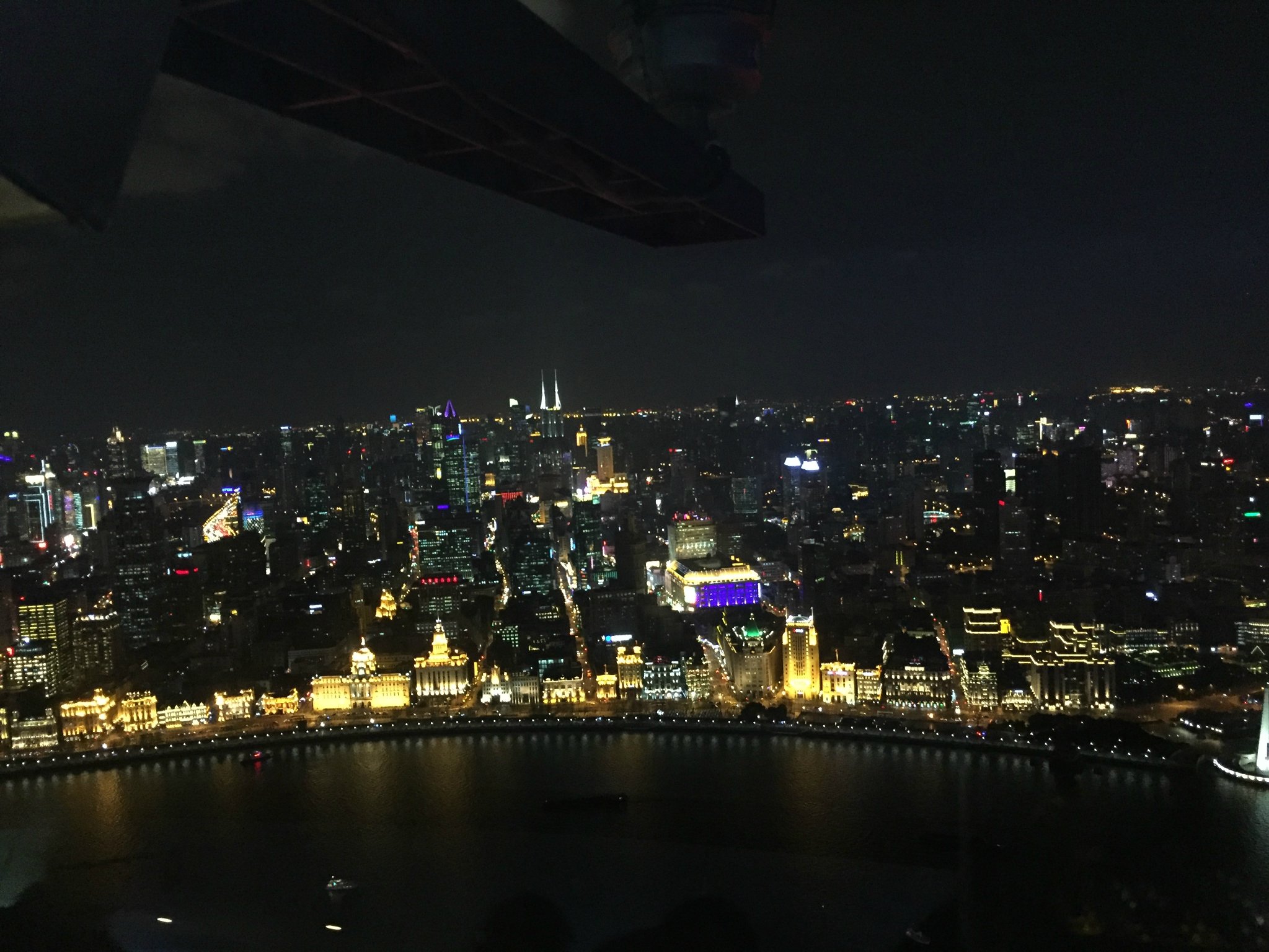 逛了一阵子外滩拍完照,看看手机已经是下午四点多了,我们就花了2块钱在外滩坐轮渡到陆家嘴(外滩轮渡-陆家嘴轮渡 ),上岸后还要走1公里左右才能到达东方明珠,但到了东方明珠取好票进去排队后,我俩就后悔了,因为在我们前面的人居然有好几百,足足排了两个小时左右才能坐上电梯上塔,早知道前面有这么多人的话,我就直接买个东方明珠自助晚餐好过了,因为上塔吃自助晚餐是不用排队上塔的,排队排的想死的心都有了。但上到塔后,我心中的不快已经被美丽的夜景覆盖了,站在透明玻璃往下看,我居然没有恐惧感,证明我不是愄高的,呵呵呵。。。下塔后,我俩居然懒得去找吃的,先去欣赏一下万国建筑群的夜晚填一下肚子先,哈哈哈。。。。欣赏完夜景,坐地铁2号线陆家嘴站-世纪大道转9号线-小南门站,在酒店附近随便找个晚餐吃一下就算了。。。