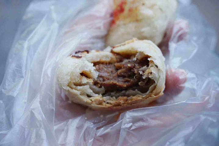 路过,虽然嘴巴没停过。但是想吃鲜肉月饼了。 大包晚上沽清木有了。就买两只月饼解馋吧。 心想要趁热吃才好,旁边长椅坐了会儿,结果被蚊子咬了好几口。 鲜肉月饼层层酥皮,一咬掉渣。肉馅饱满,热腾腾的两只月饼下肚,感觉自己圆满了。