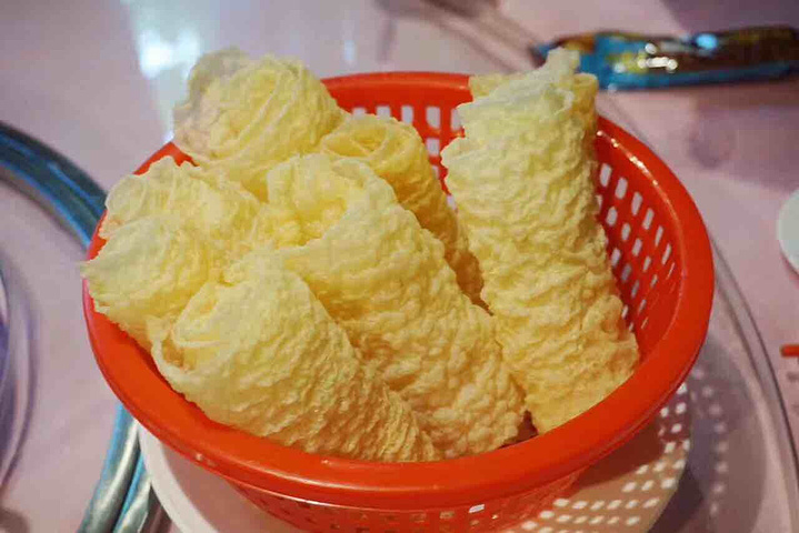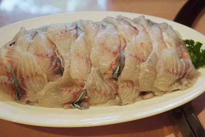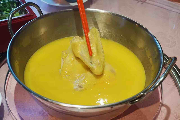 白鳝片,鱼片切的蛮薄,口感还不错。金黄的火锅汤底端上来颇有食欲,每人先喝两碗汤。想想还是1:30吧