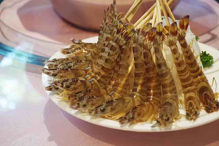 前一阵大火的网红店。提前半个月左右预订,也只有下午1:30和晚上8:00的位子。想想还是1:30吧。 服务态度还不错,会分好煲仔饭,帮忙分汤底给每一位。 一定要人多来吃才划算。 6个人吃下来人均260左右,性价比还不错。人少价格要高了。 金牌土鸡花胶锅。金黄的火锅汤底端上来颇有食欲,每人先喝两碗汤。香浓醇厚,但喝完依然口干。 椒盐粟米,玉米是我的爱,只要是香甜软糯的,怎么做都喜欢。 煲仔饭用料十足,但锅巴太少。 牛肉和斑节虾都很新鲜。 炸响铃在汤底里兜一圈就可以吃咯。 白鳝片,鱼片切的蛮薄,口感还不错。 蔬菜拼盘一份很实在,最后汤喝饱了也吃不下蔬菜了。 饮料在一众菜品里价格算低的。有港式茶餐厅的水准。