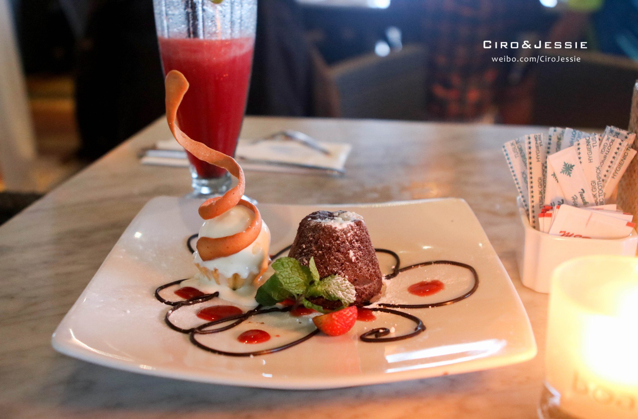 强烈推荐这款冰激凌配热巧克力的甜品,不过需要等待25分钟,热热的巧克力包裹在蛋糕中和凉凉的冰激凌一起吃带来冰火两重天的感觉。