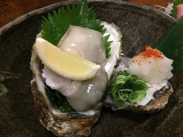 牡蛎,看日语以为一份是4个,结果只有1个,这么一个就要约40元,价格是很贵的