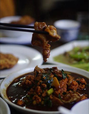 都以为我在德清会 推荐面馆但是我肯定不安套路出牌 这家依旧是本地人强烈推荐的店 开了好多年所以也没有什么环境可言 菜是一桌一桌烧的 所以要么一个菜没有上要么全给你上齐 菜基本浓油赤酱人均也就 60r “浙”一口|肉饼子 点的时候嫌弃他过大油应该会很腻但是吃了第一口就感觉要吃下一个了 洛舍是一个地名所以这道“招牌菜”没有人反对吧调味很棒且配醋更加不腻了 “浙”一口 |茭白牛肉丝虽然鱼籽鱼泡是这家招牌 但是同样的调味我更想推荐这道 牛肉量给的很足;大火爆炒后的特有锅气下饭也是刚刚好太棒了 “浙”一口 」金针菇炒芹菜 山里的金针菇和外面的是不一样的超大朵感觉到了它的茁壮 在丰厚的“勾芡”汤汁里感受到老家同样的炒法 炒青菜确实用了很多料 但是鱼肉做的“豆腐泡”太过于咸 对于我们这群不吃米饭的小伙伴不友好