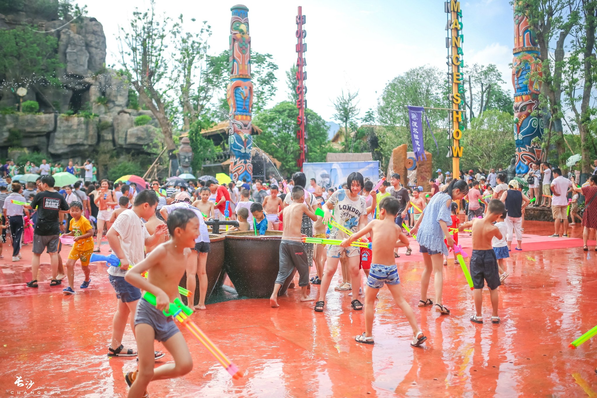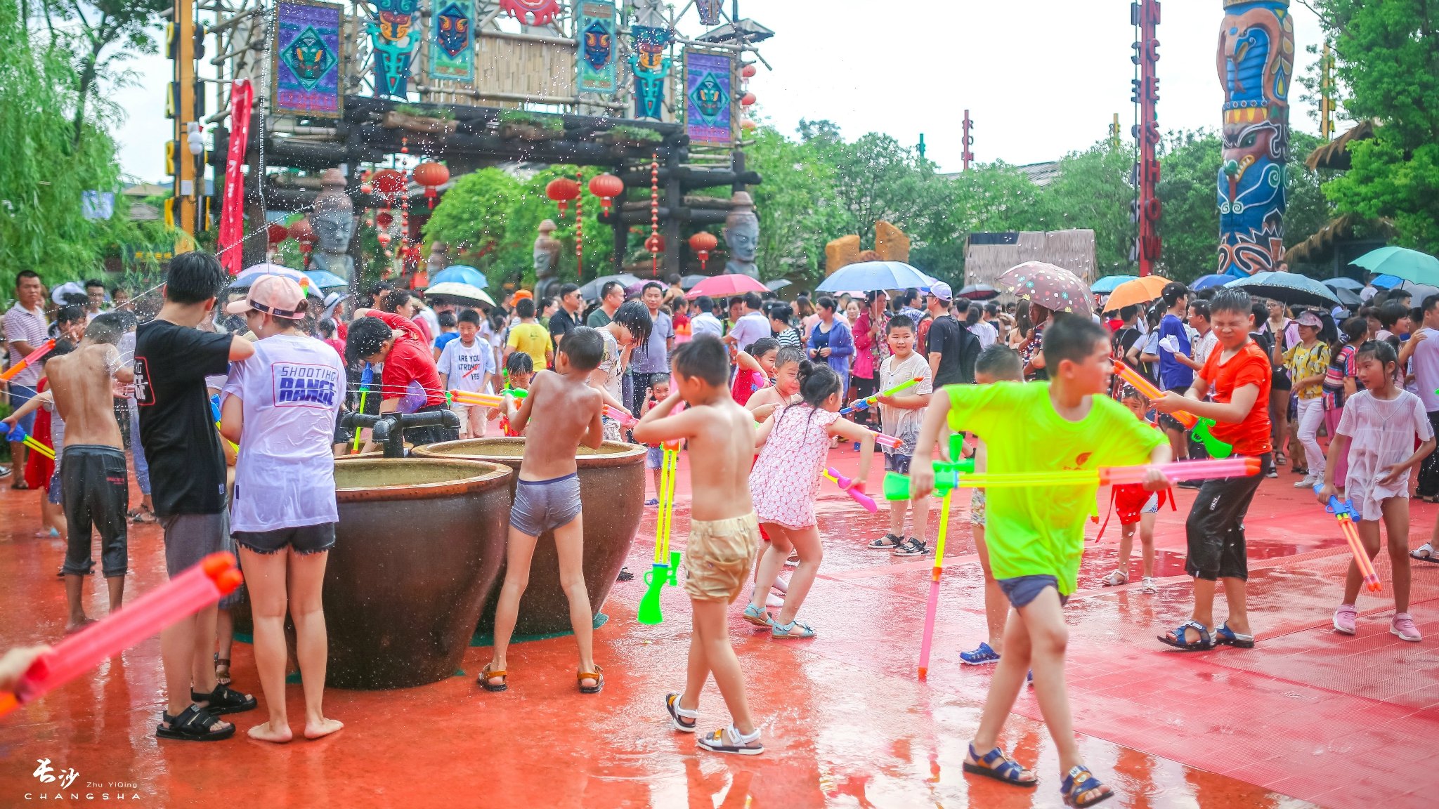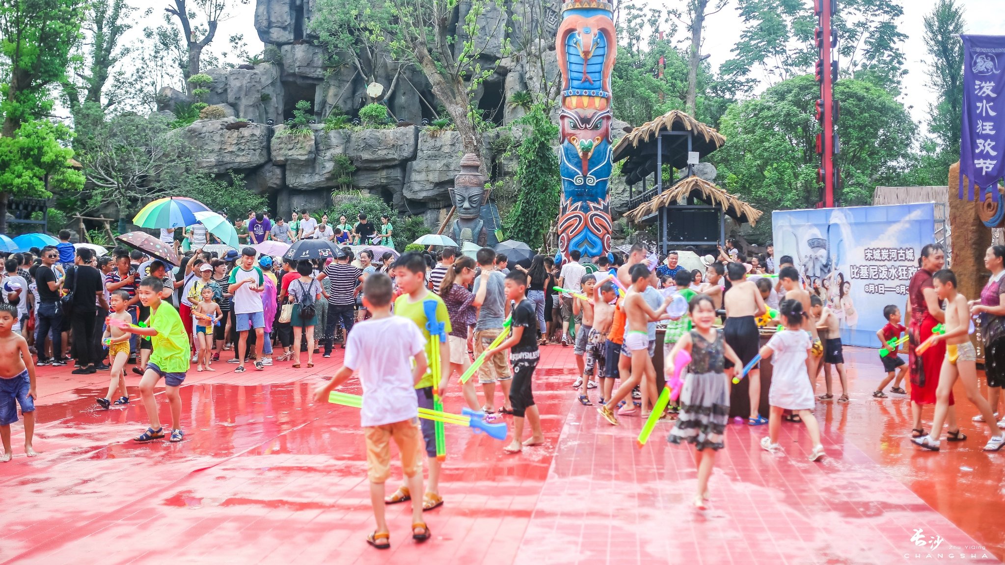 八月中,正值湖南最热的季节,炭河古城也正好迎来了夏日泼水狂欢,许多放假的孩子在祭祀广场泼水泼得不亦乐乎。景区里提供更衣室、泳衣、干毛巾,简直就是为了被泼湿而做了充分的准备。