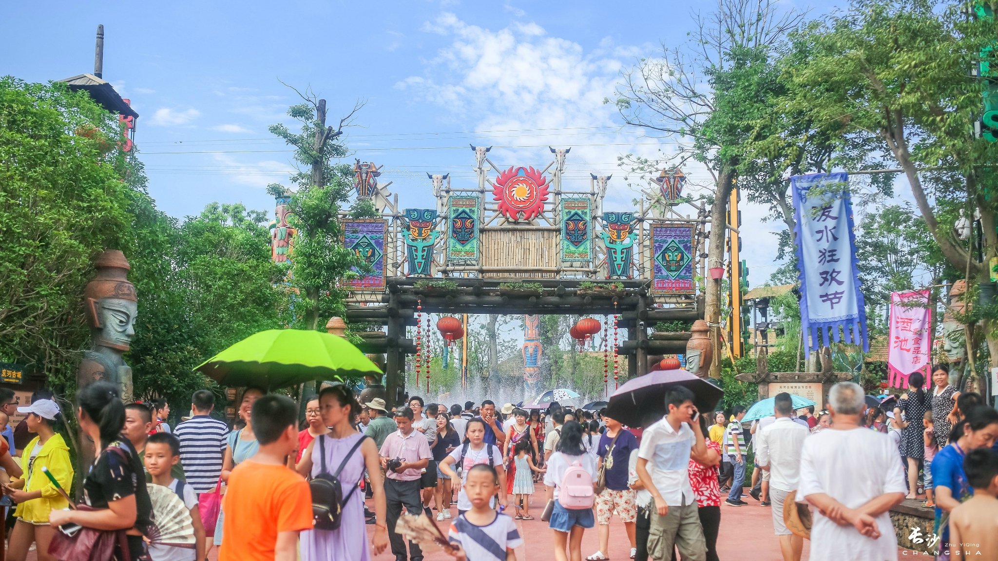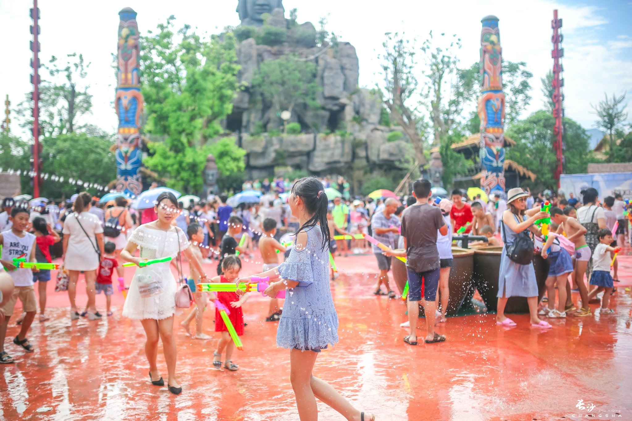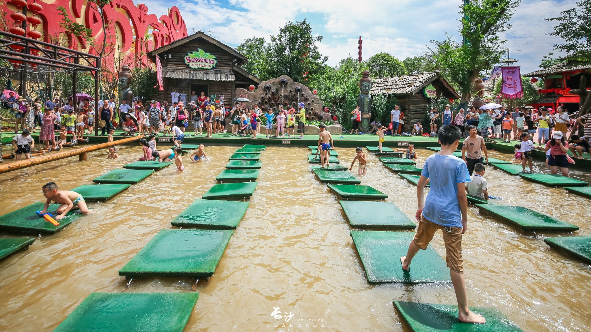 八月中,正值湖南最热的季节,炭河古城也正好迎来了夏日泼水狂欢,许多放假的孩子在祭祀广场泼水泼得不亦乐乎。景区里提供更衣室、泳衣、干毛巾,简直就是为了被泼湿而做了充分的准备。