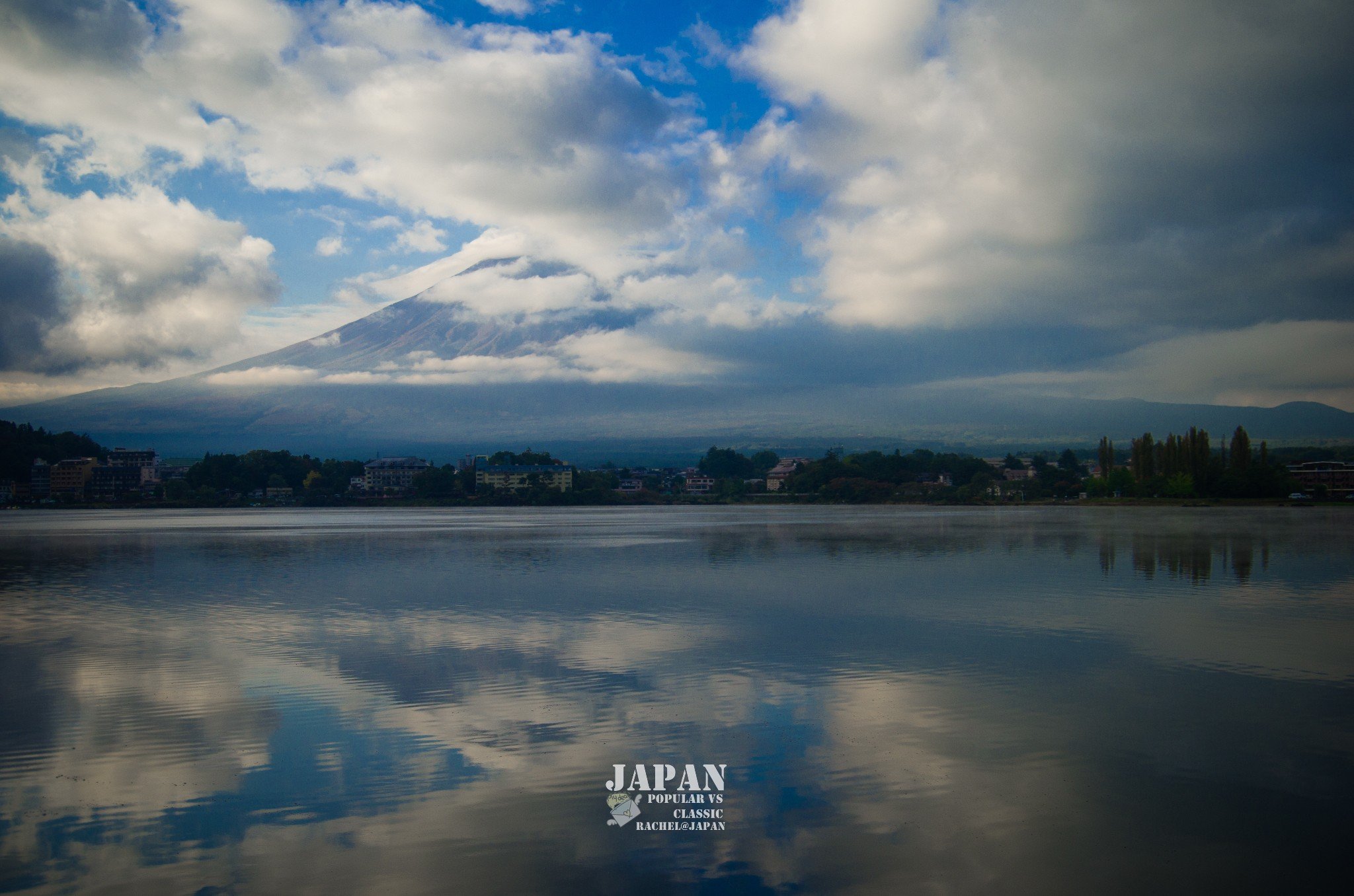 当次日我9点多钟回来的时候,她们问如何,我将照片给她们看,各个张成了“O”型,连连说“Early Bird tastes food”,而那时,大片乌云已涌上来,富士山已完全藏在云中~