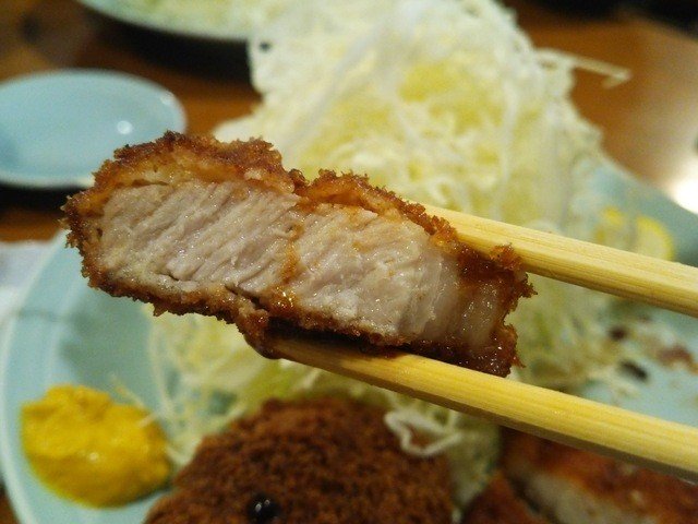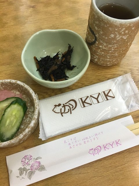 我点的是在KYK招牌猪排,一份1080日元加税大约70元出头,配一碗味噌汤+无限量的卷心菜,卷心菜淋了特制的沙拉酱,甜美入味但是不腻,反而有清爽解油腻的感觉。猪排最大的特点就是很入味,从炸制猪排的颜色看出来有点微焦的感觉,实际吃起来没有糊味,表面的皮也是脆的,一口咬下去有美味的肉汁混合,很是可口。如果口味重的亲,还可以在餐桌前加特制的猪排酱或者撒一些芝麻,会更加下饭。普通米饭加40日元,可以变成五谷饭,多增加一些粗粮以及紫米之类的,感觉也不错。免费的茶水是玄米茶,也可以无限取用,有服务员会专门来帮你续杯的,服务也很好。其他菜品推荐炸虾以及芦笋虾球,两者混合的,不过每天限量供应,去晚了就没了。