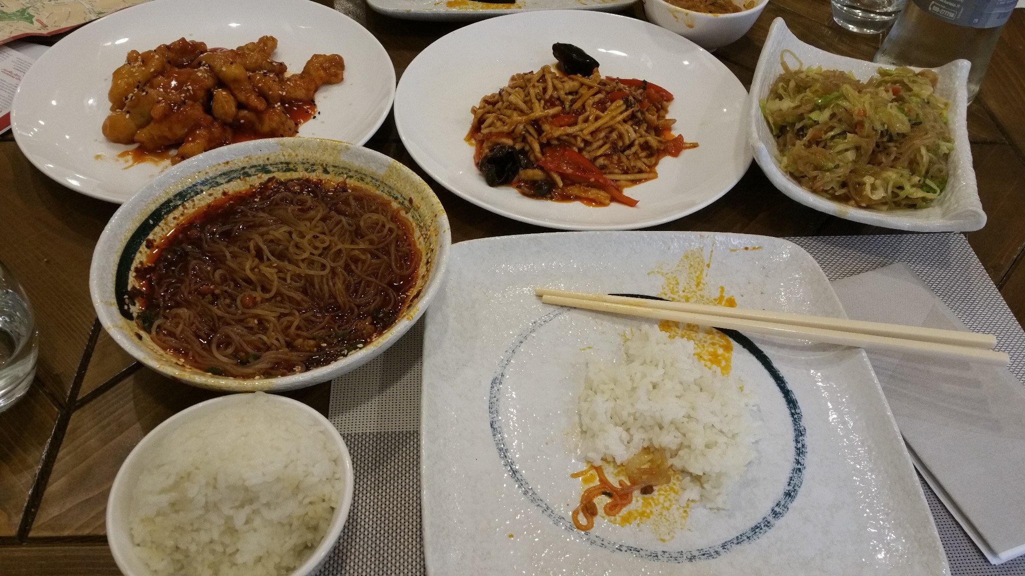 点了个糖醋里脊、鱼香肉丝、包菜粉丝、酸辣粉、米饭、水,一共才花30欧。服务小妹也特别好,店里也超干净,不像是之前在佛罗伦萨吃的中餐,各种不咋地。