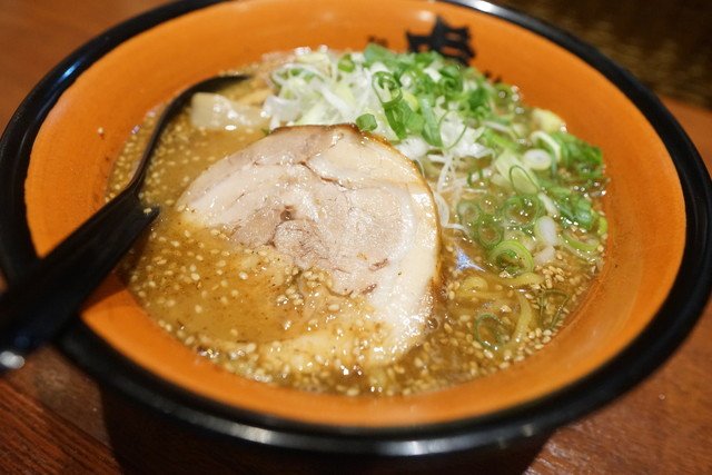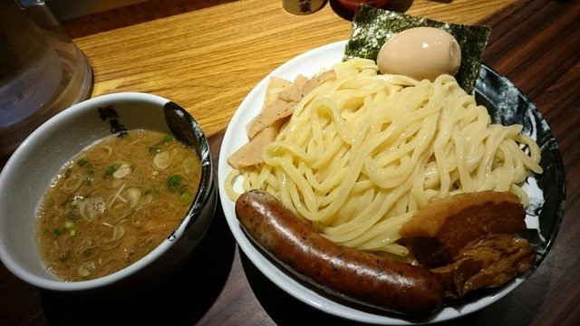 说说我点的汤面叫做“琥珀面”850日元一份,里面葱丝是轻微炸过的,没有平时生葱刺激的气味。叉烧也是非常软的那种,入口即化,我特别喜欢这样的口感。单加一片是120日元,溏心蛋也很不错哦。精华就是面汤,熬制了很久的骨汤,非常入味,咸味比捞面控制的好很多,冬天吃完一碗,整个身体都暖和了,非常不错。捞面一份要1050日元比较贵的,配料里有一根肉的香肠,口感比较干,没有叉烧好吃,甜笋我很喜欢吃,面是冷的汤很热,这样沾了吃感觉也很有弹性。觉得咸就多喝水,总之冰水是免费供应的(冬天也是冰水)。