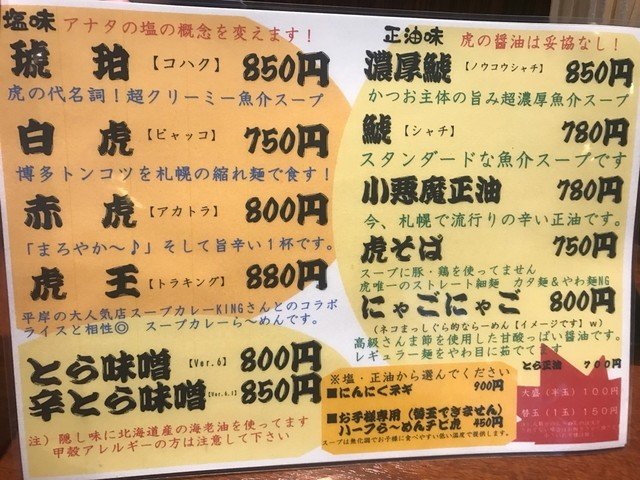 竹虎是东京城西新宿歌舞伎町人气的日式拉面馆,因为距离京王酒店很近,往南步行5分钟就到了,这家酒店有不少国人团队入驻,而出现挺多国人的面孔,但是味道名副其实值得来。西铁的话要坐西武新宿在东口3下车步行约3分钟也可以到。店内主打的是捞面,就是一份干面,一碗浓稠的面汤,这样沾取的吃,我个人觉得这个汤味道太咸了。 嗯日本人餐饮方面也有这么重口的时候。可能这样受到不少国人的喜爱。和表弟一个来的,我点的特制的汤面,他还是拉面。一份面800日元左右,加叉烧、小菜额外付费,再算个饺子或者啤酒,人均60-70元搞定,对于东京一餐,算是个性价比颇高的特色之选。