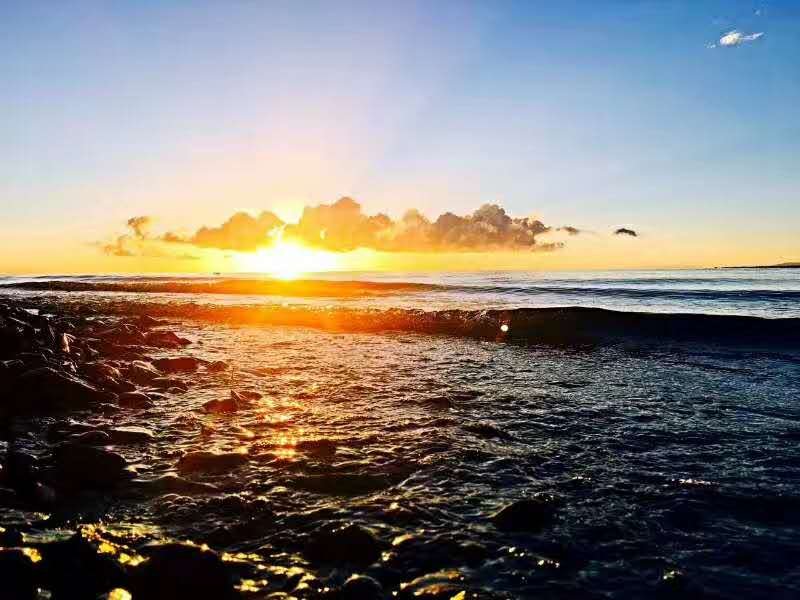 早上六点的多时候,大家就起床收拾,准备驱车前往不远的湖边看日出。迎着晨曦和肆虐的湖风。冻的人瑟瑟发抖,但是美景不可辜负。观景处,只有我们和几个不多的摄影爱好者,都在满怀期待的等着晓日破云而出的壮观景象。好在天公作美,天气晴朗,日出如约而至,早起的悻悻睡意和瑟瑟寒意被这美景一扫而光,值了。