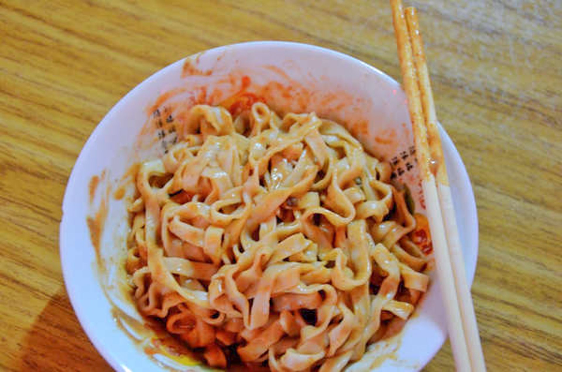 简陋的遮雨棚,暗黄的灯光,矮小的桌椅摆在破旧巷子里,再差的环境也抵挡不住人们的热情,局口拌面从来座无虚席。