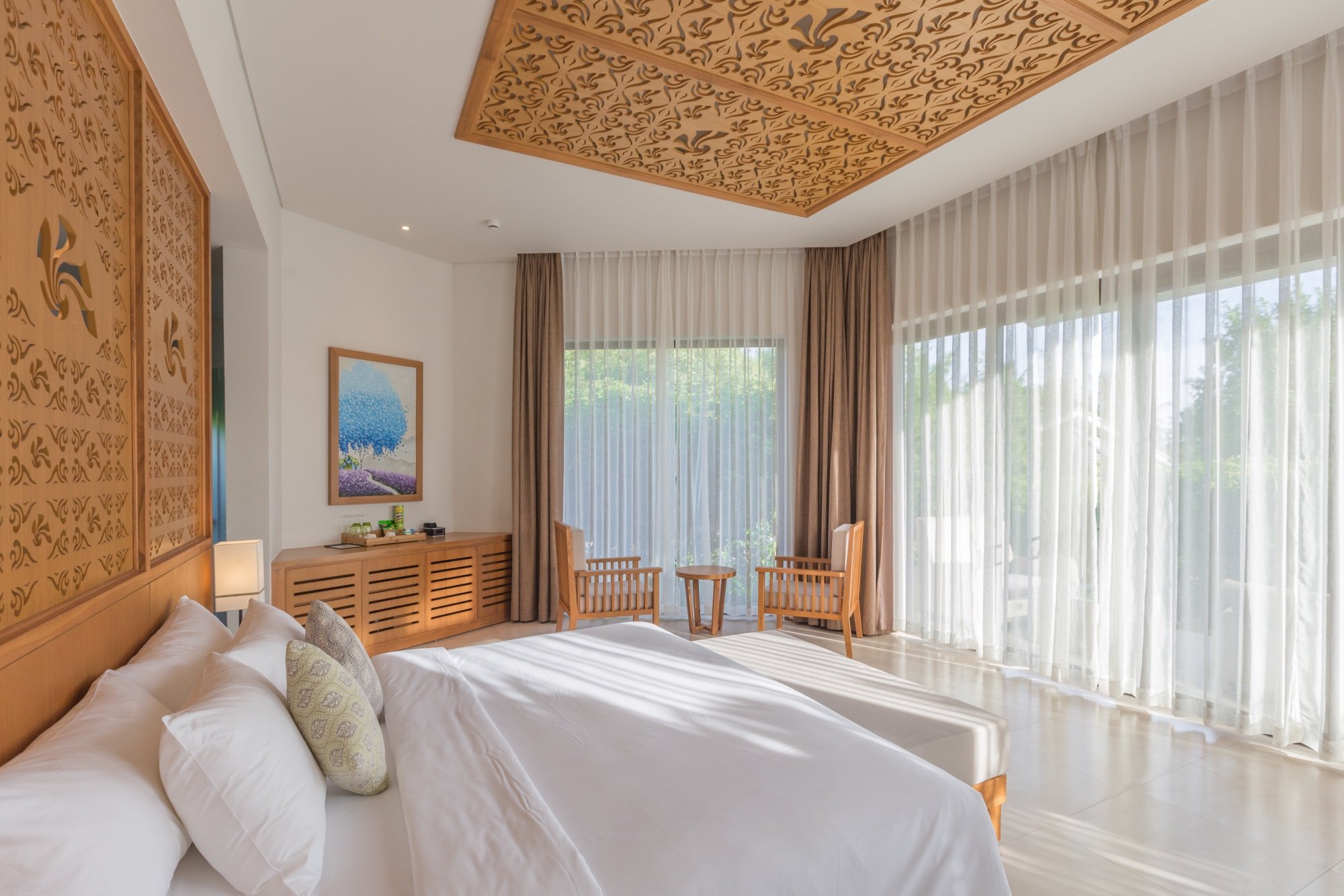 贝壳度假要索菲特酒店与众不同的是其私密性,这里不仅仅拥有类似贝壳的海景房,还有池畔奢华别墅和园景奢华别墅。每种房型看到的景观都有所不同,而我选择入住的是园景奢华别墅,这里是独立私密的,非常适合情侣以及度密月的新婚夫妇。