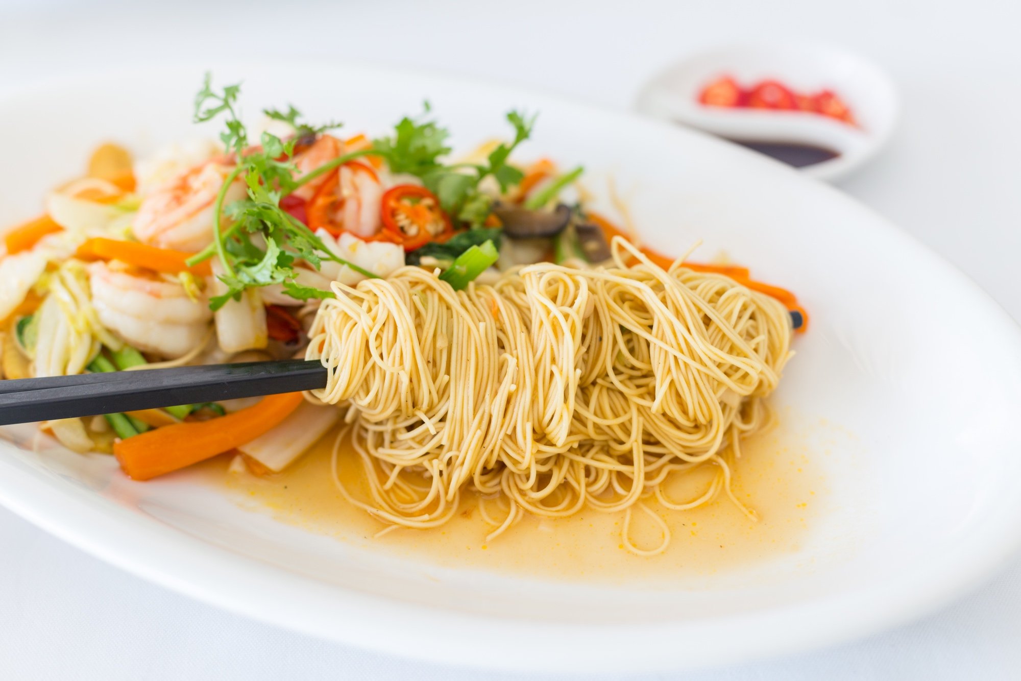 海鲜面,面条用筷子裹成这样的形状上桌,创意十足。