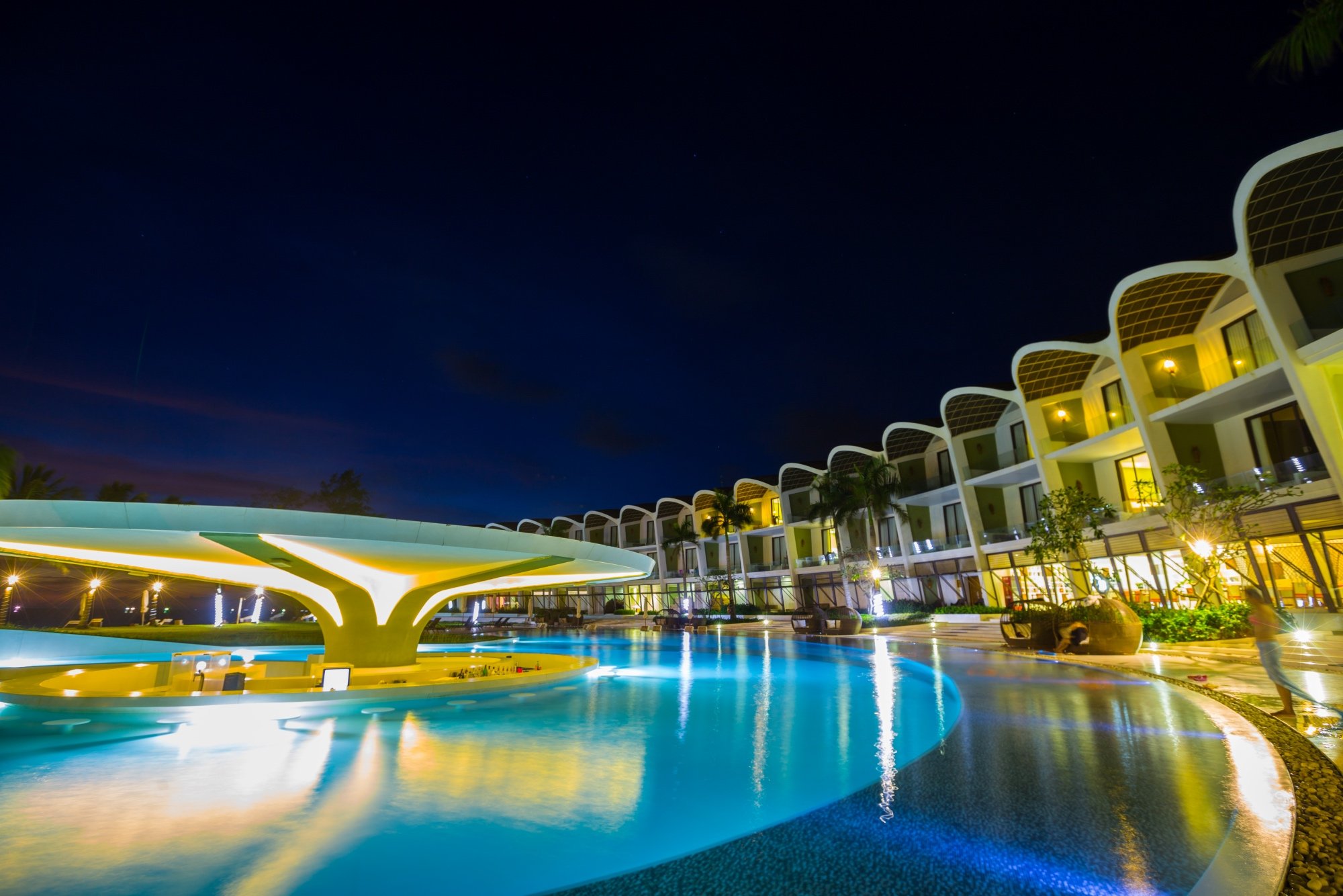 酒店面积非常之大,一般情况都是电瓶车前往入住房间。拍完海边的日落,又到了拍摄酒店夜景的最佳时机