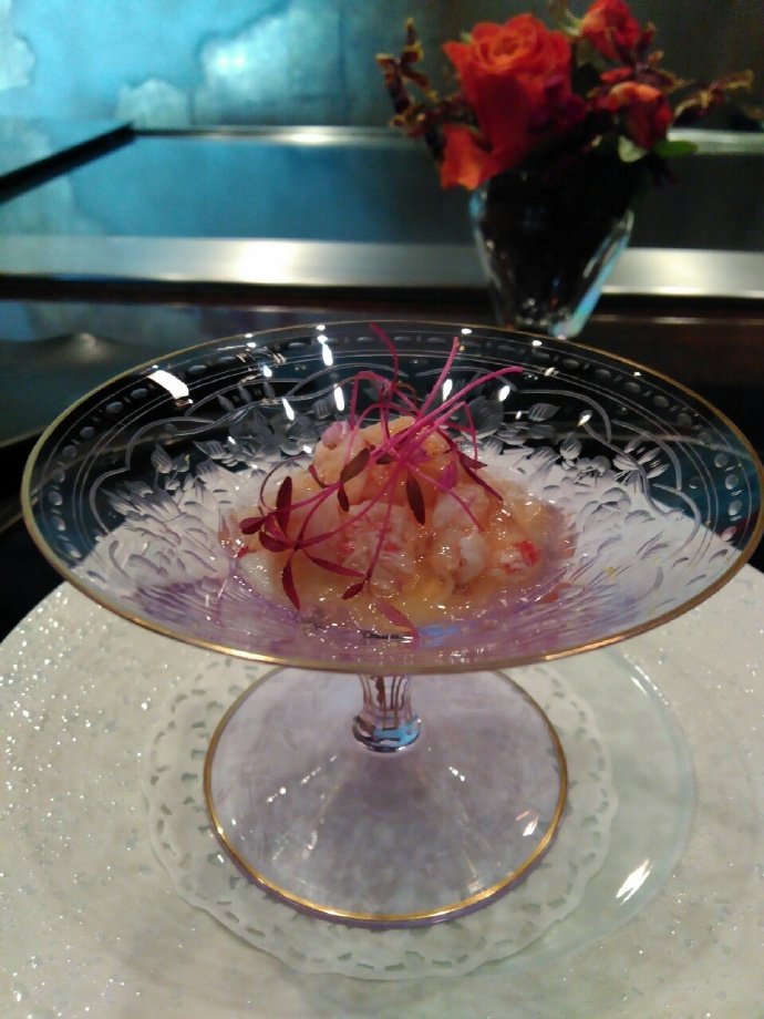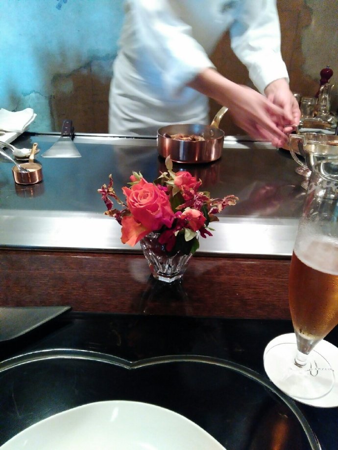 和朋友约在表参道一楼香奈儿店前,要上楼这家米其林一星店,听起来是酱紫的[铁板烧]!