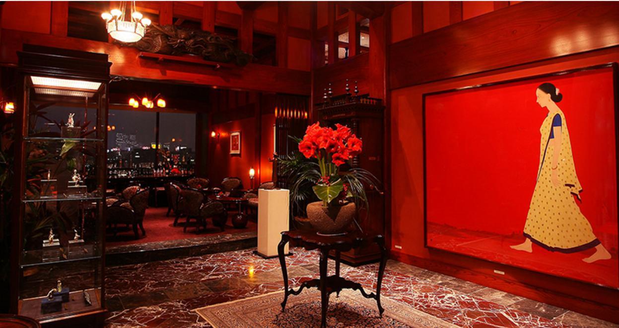 油漆的大梁和柱子、印度红灰泥墙面和马赛克墙面、店内的日本风格和新艺术主义风格融为一体、宛如一座美术馆.