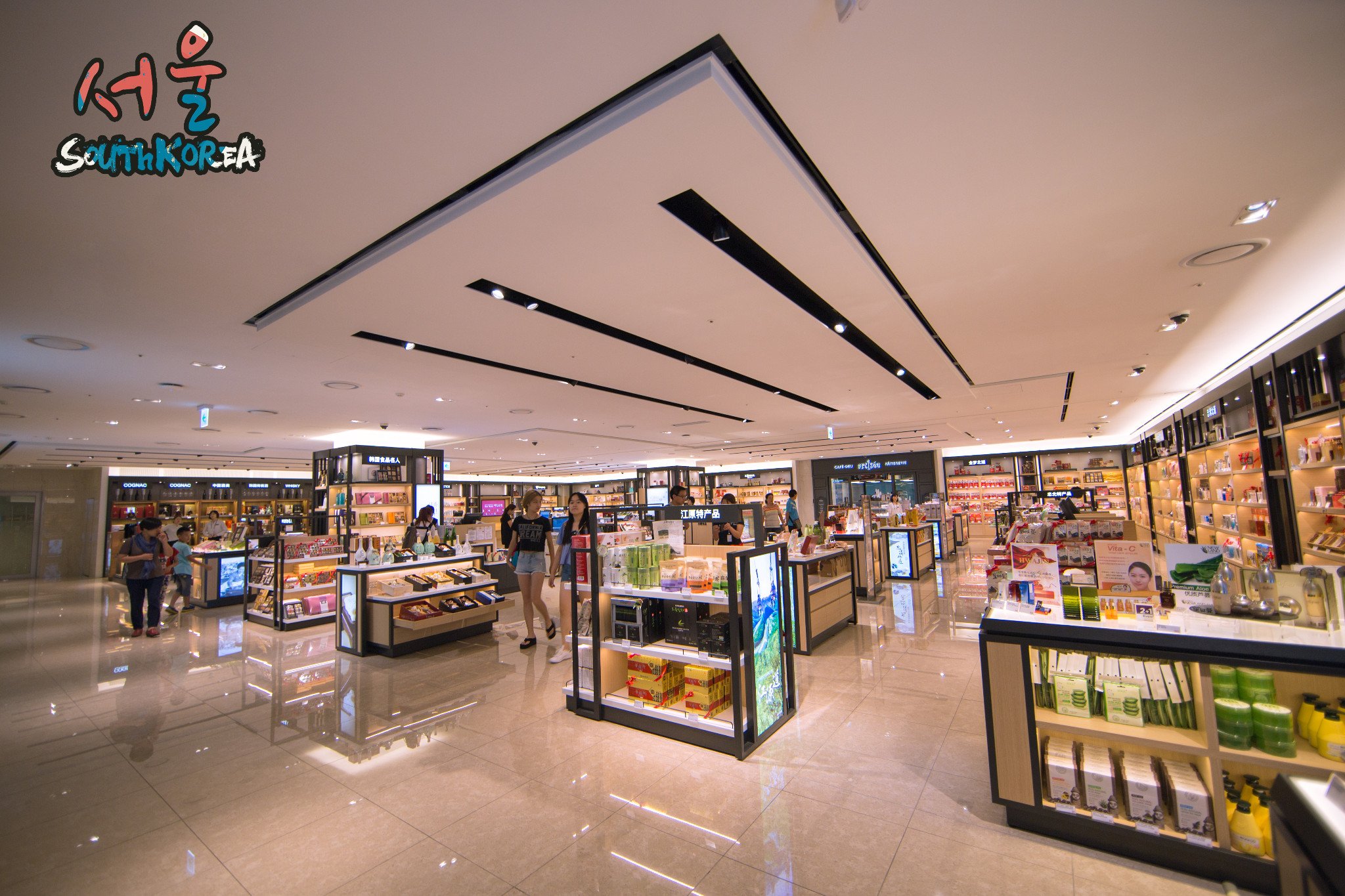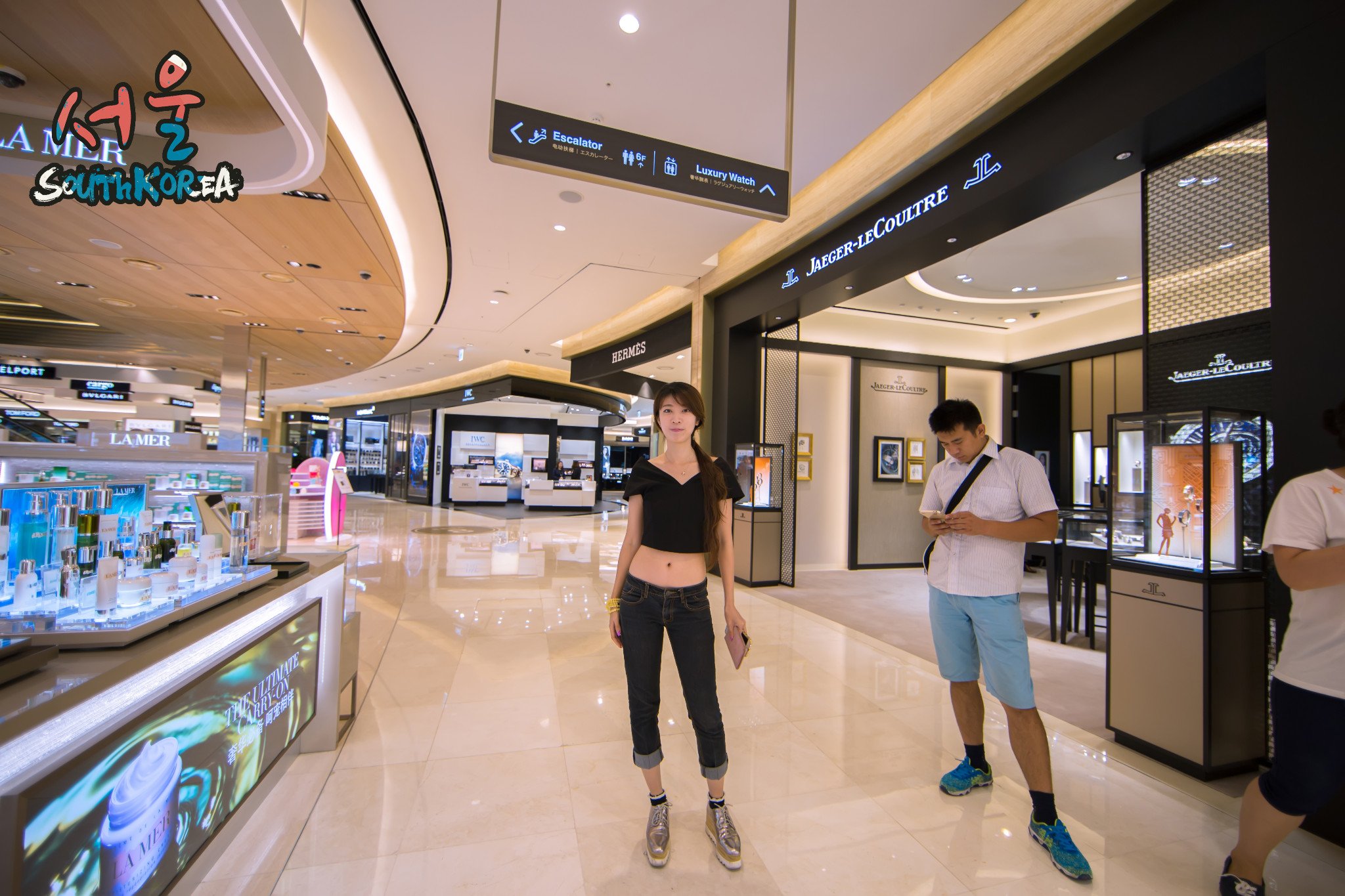 电梯上来直走到头就是新罗爱宝客免税店的门口。
