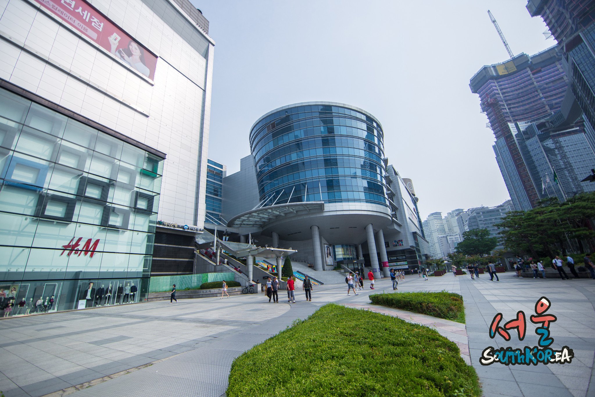 电梯旁那个透明玻璃的圆型建筑就是EMART超市。
