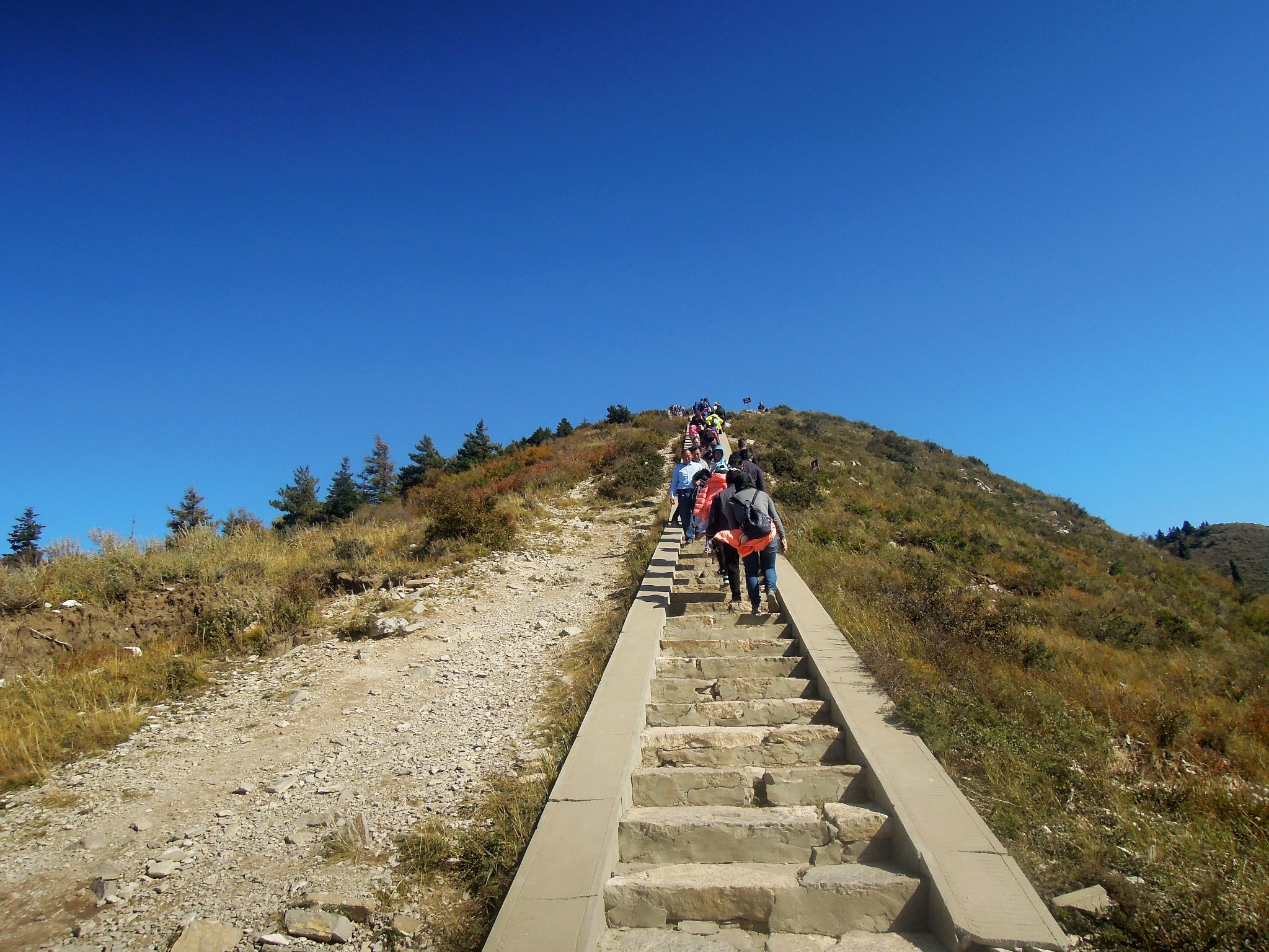经过约2小时攀爬,到达恒山天峰岭。