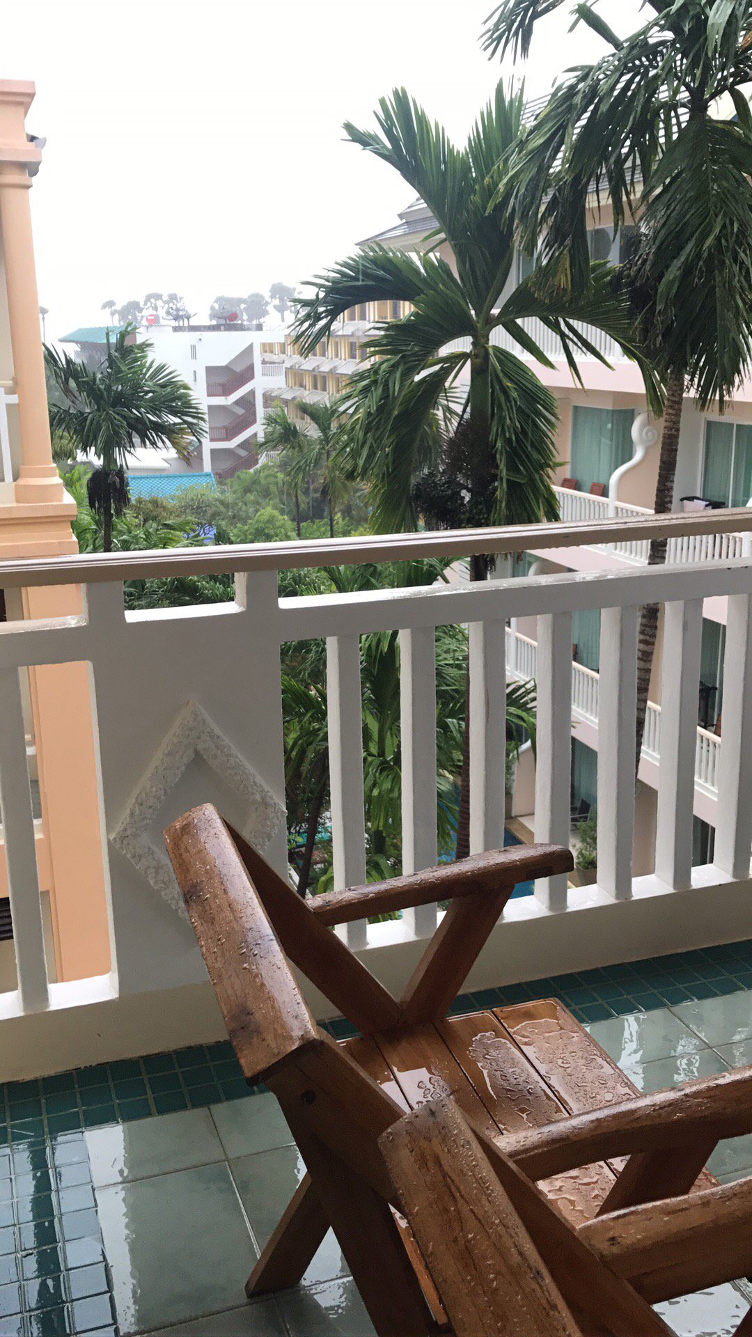 今天预定的皇帝岛珊瑚岛出海,司机接我们走了一半路又返回,因为刮风下大雨。又送回酒店了。好可惜啊!泡酒店吧欣赏椰子树被风吹