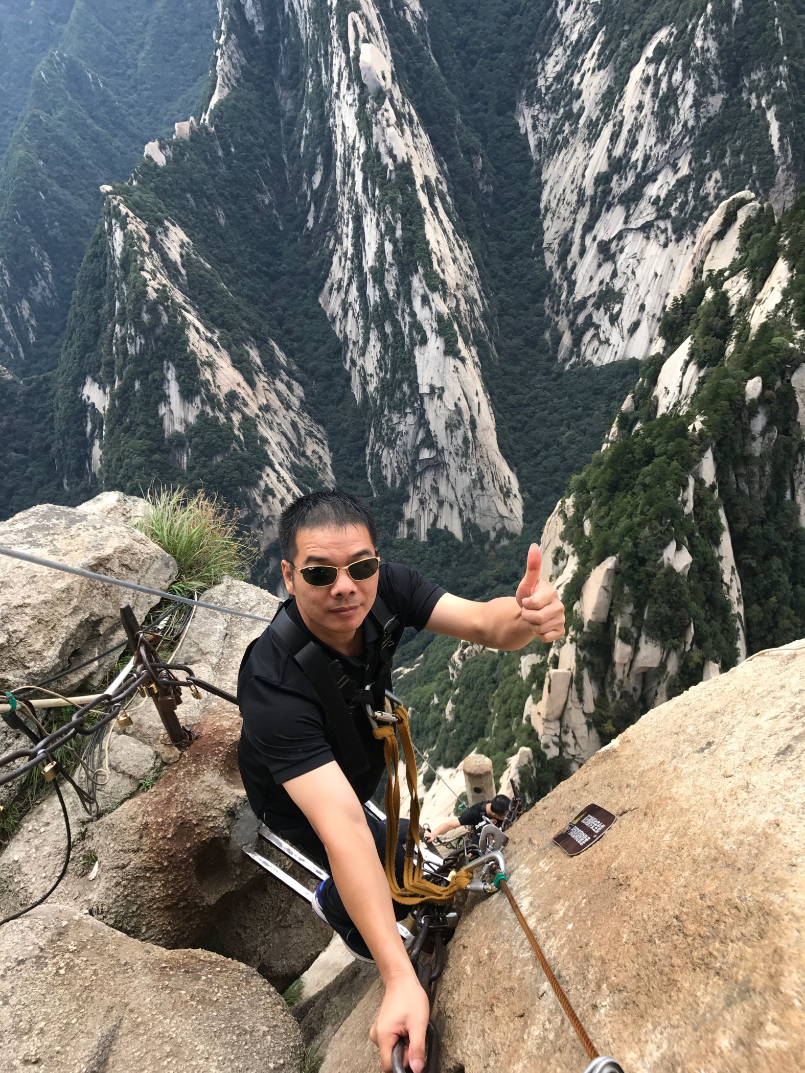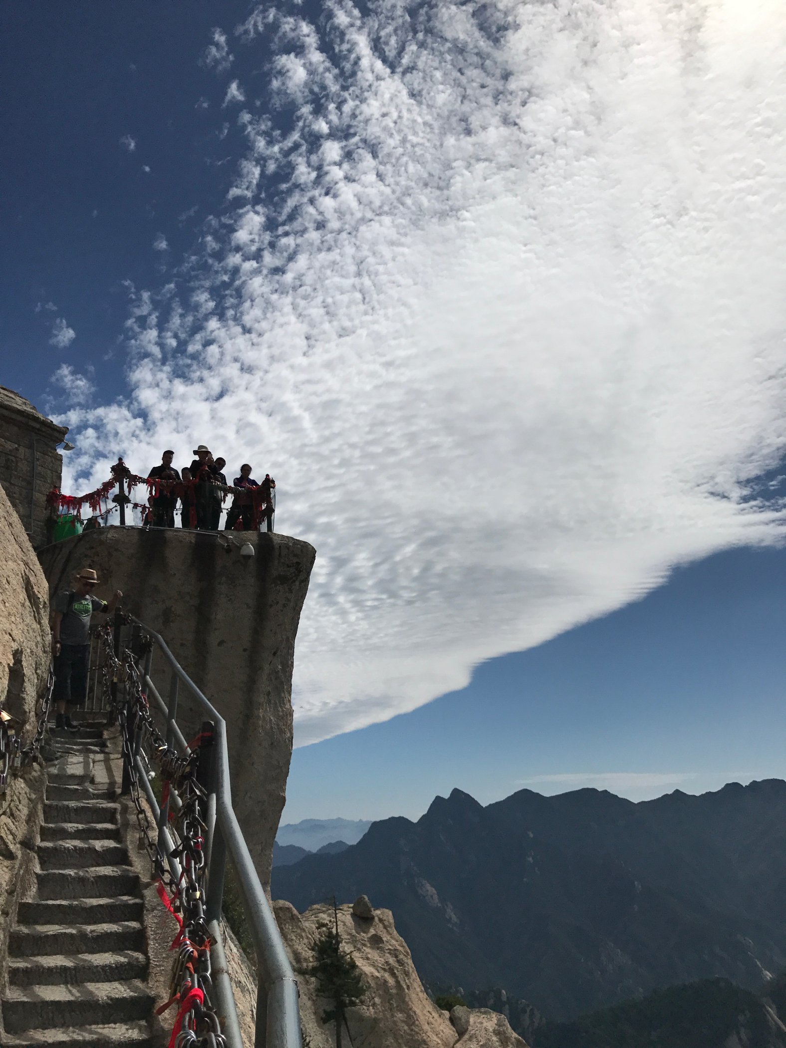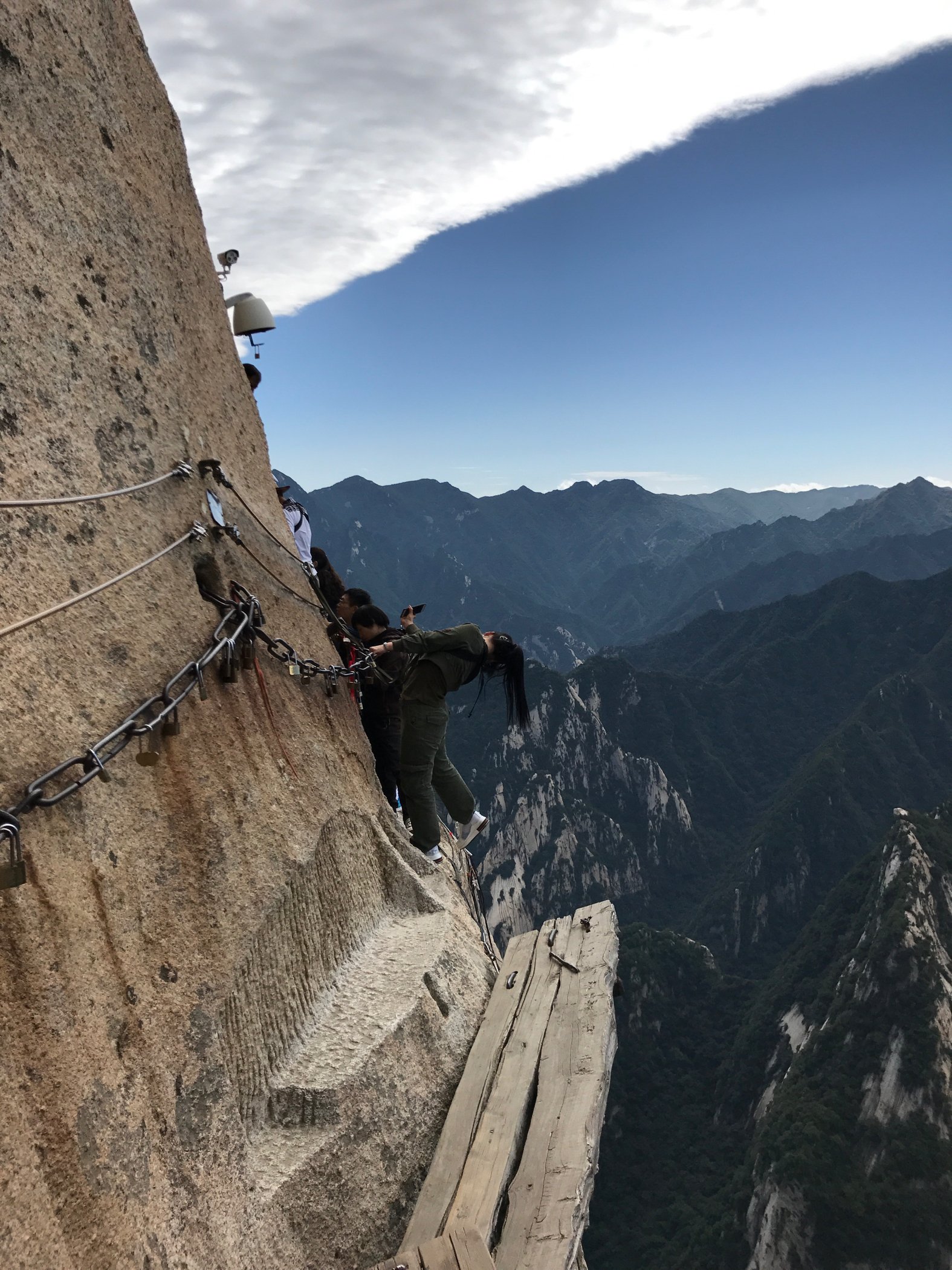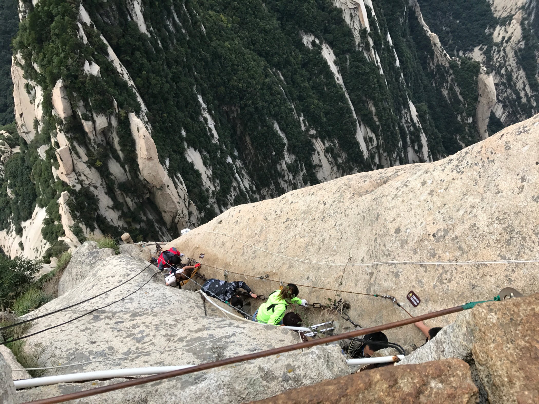位于南峰的长空栈道,是华山天险的另一绝,不可不去,非常险要,但我个人认为它的木板也好,它的保护索也好,都存在一定的安全隐患,大家玩的时候一定要要小心。