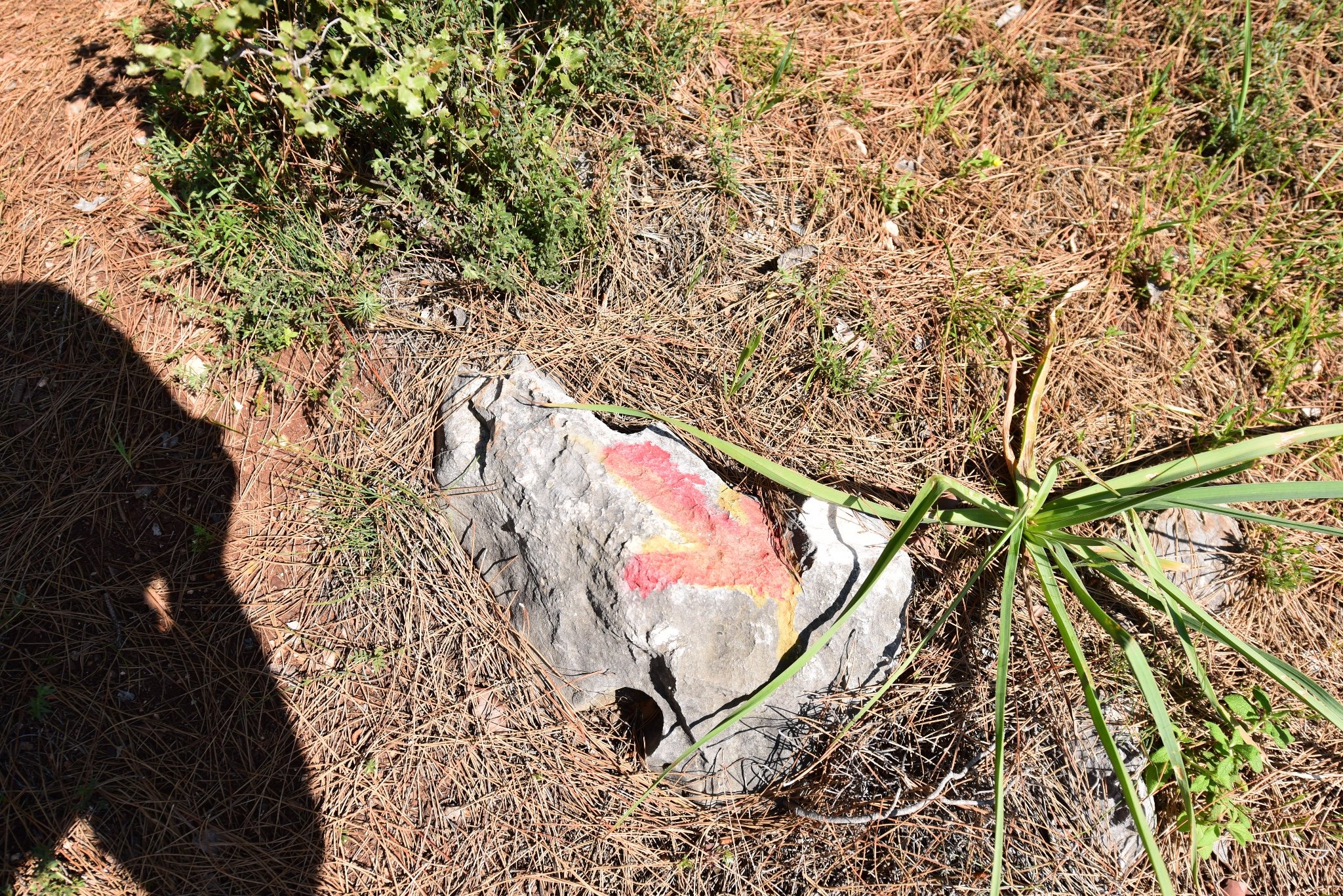 沿途没有常见的方向指示牌,取而代之的则是前人在一块又一块的石头上留下的油漆标记,标记一共有两种搭配色,而这就是蝴蝶谷徒步的指引牌了。