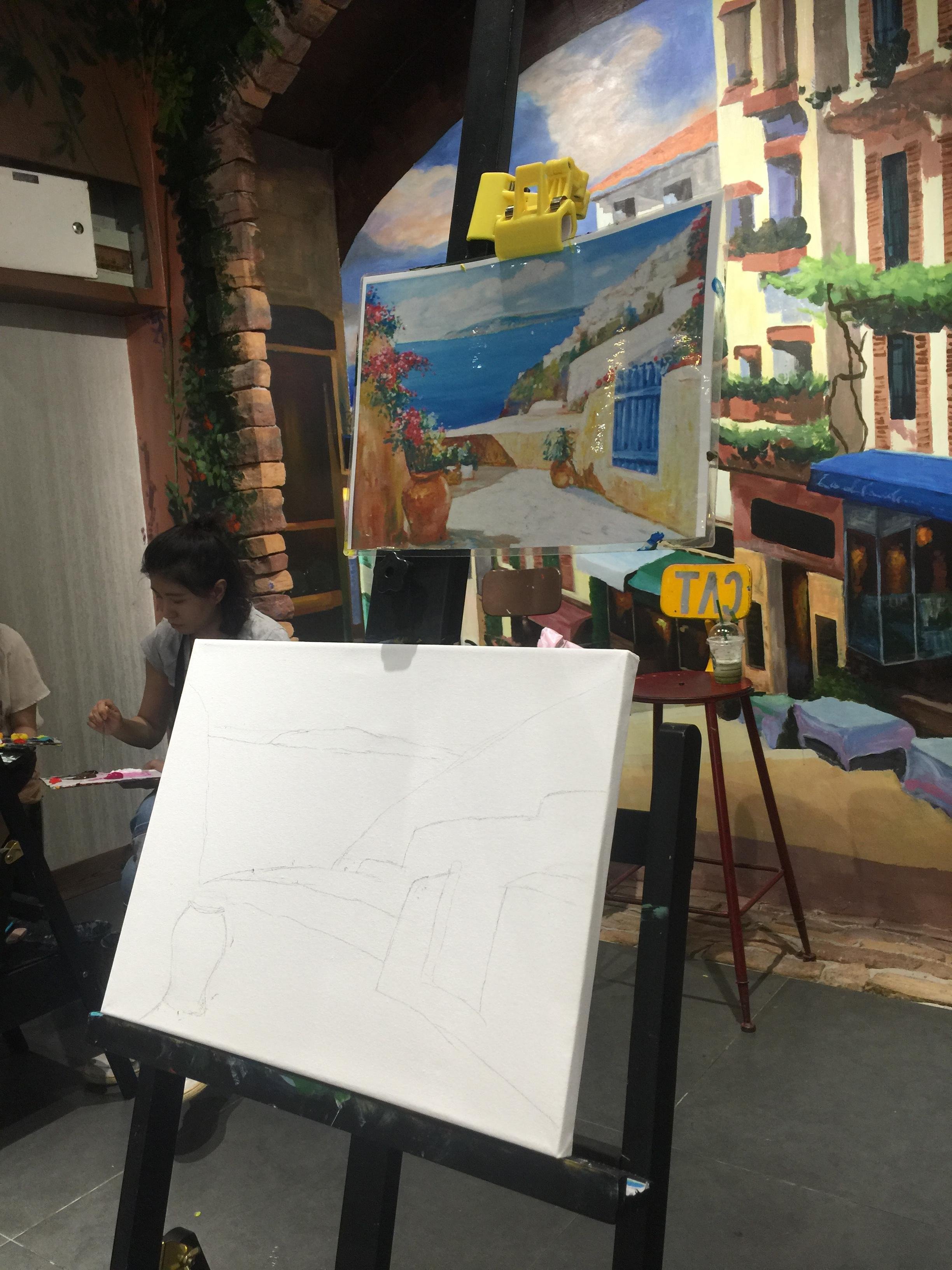 没有限制时间,画不完的还可以存在这,下次来了接着画