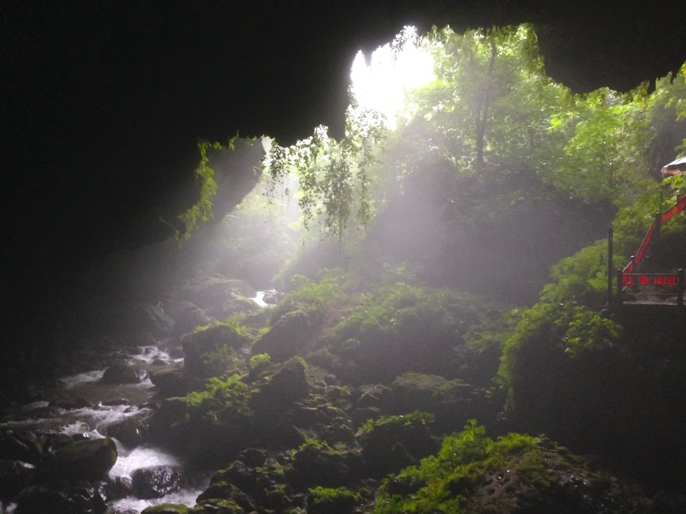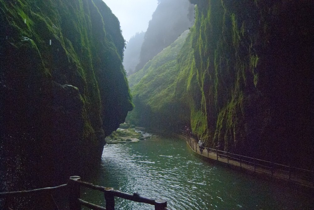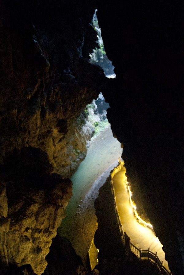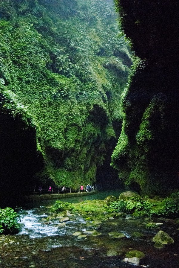进入景区一开始一直下楼梯,没什么景色,约半小时下到谷底。开始沿着清澈的小溪向峡谷纵深走。半个小时左右过了情人桥景色开始就不一样了。溪水流入了地下暗河,与隧道贯通连接,通天彻地,灵气飘逸。