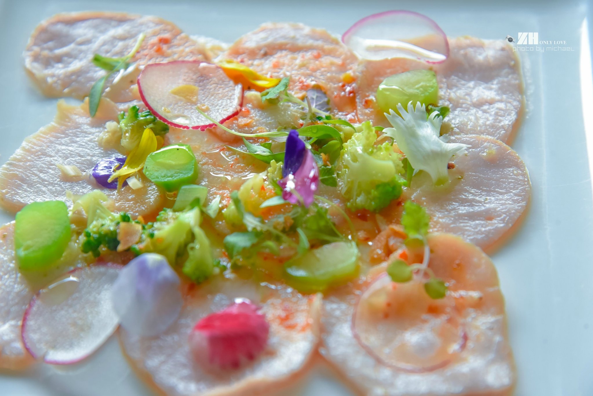 :话不多说,马上给大伙推荐这餐厅的几道名菜:泰式冻猪肉片。它的独特之处在于用65度真空低温烹猪脊肉,并配上小红萝卜,花椰菜,最赞的莫过于是淋上那个酸辣酱。