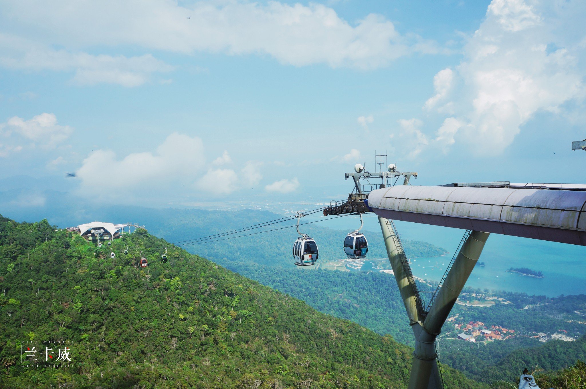 排队搭乘第二段缆车的时候,会有工作人员拿着你们的照片问需不需要购买,可以制作成钥匙扣、盘子、相框等。山顶可以看到全景,从山顶看兰卡威的海景,真是特别美丽。在欣赏风景的时候,发现所有的缆车停着不动了,起码等了5-10分钟才又开始启动,相信当时在上面的人一定都吓死了。