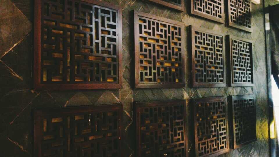 餐厅的这面悠久的镂空墙听说特别有来头,也比较搭配餐厅整体的装修。