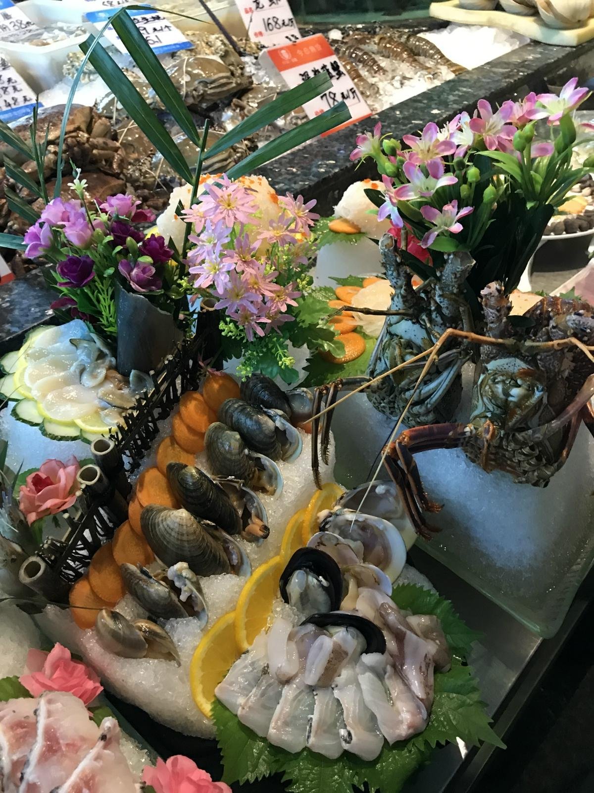 既然是海鲜店,主角当然是活蹦乱跳的海鲜们啦,这家1718公馆的食材挑选区在了1楼大厅,对客人开放,喜欢什么就可以自己进行选择,超新鲜的生猛海鲜,一眼就看得见。