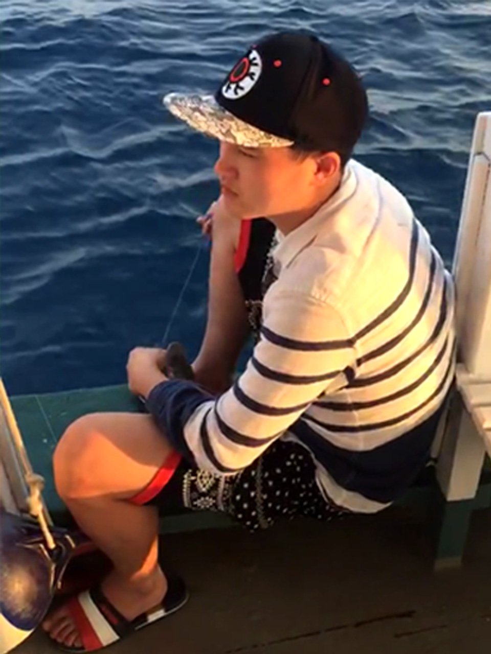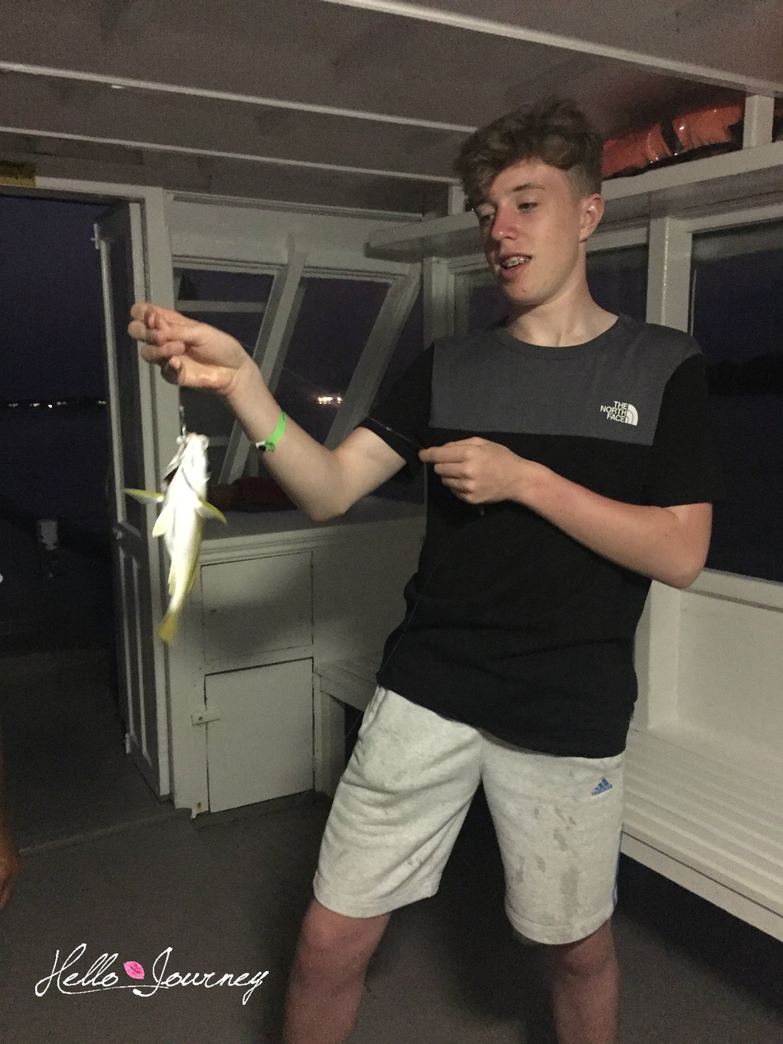 这个小伙子来自英国,刚上高中,旁边两个老外是他爹和他爷爷。每次只要有鱼咬钩,他就会狂喊:“maybe a shark!!!” 结果扯上来这么大点 我也是醉了,每次都被他吓到,骗过来看,结果每次都不是