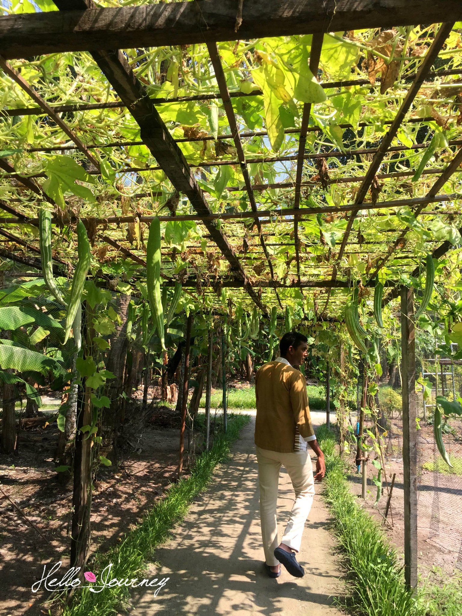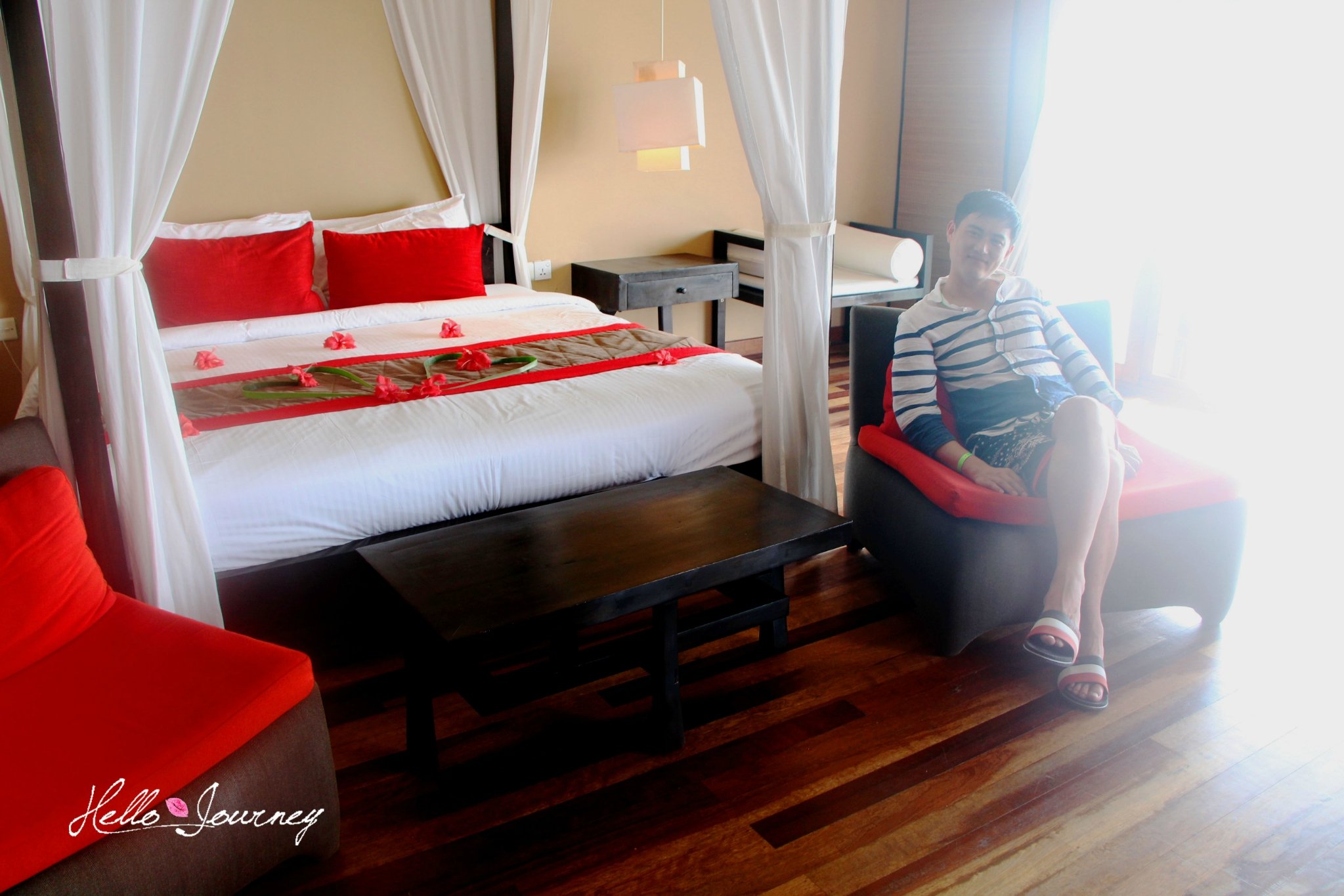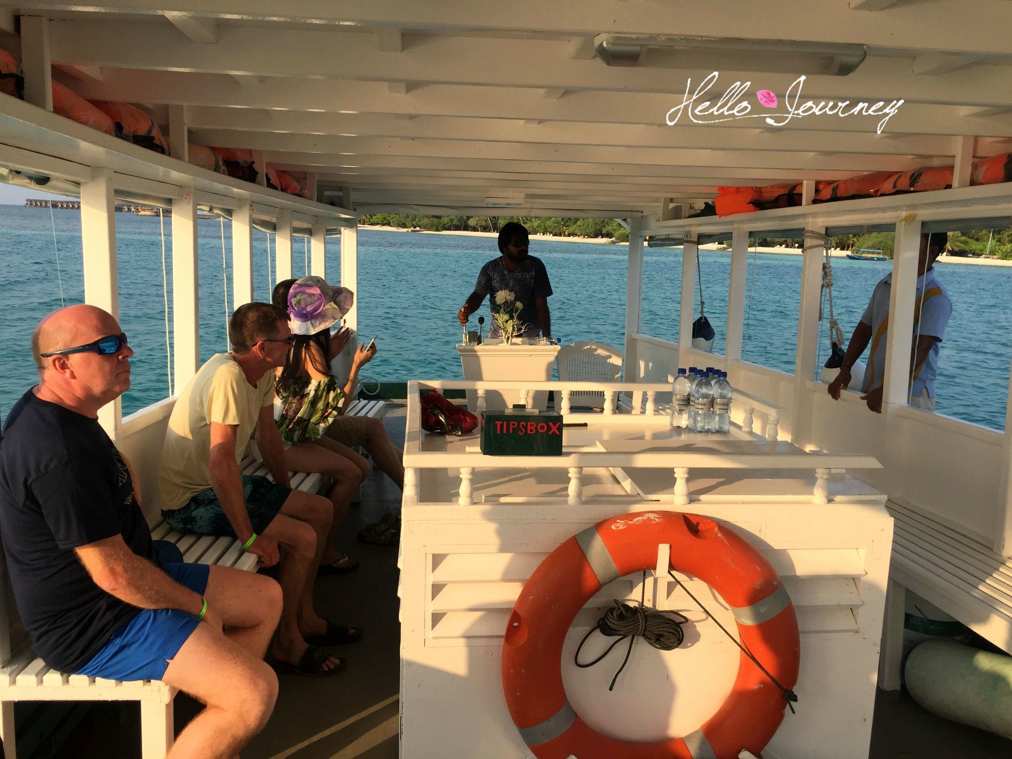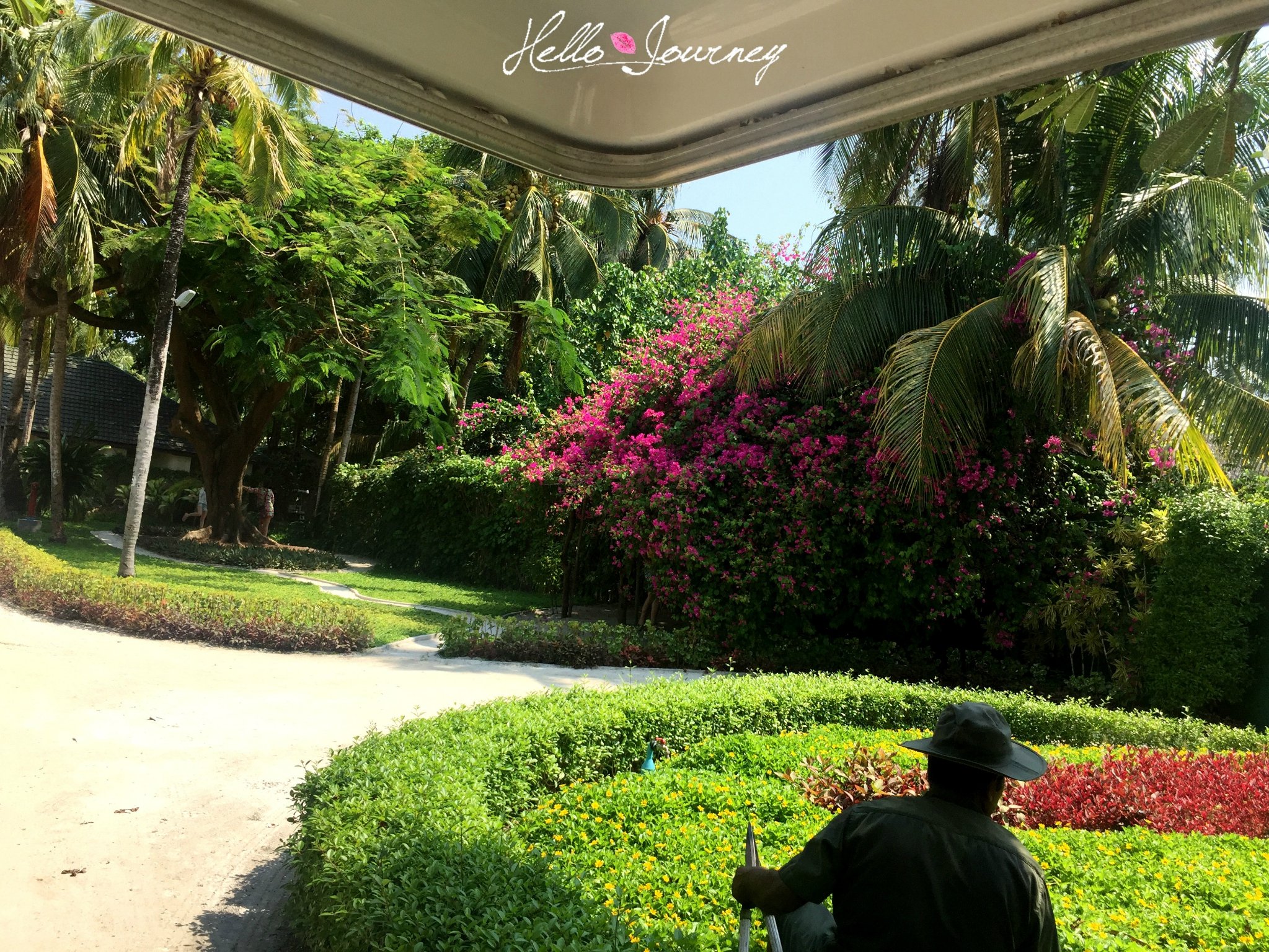 今天要换水屋,感觉瞬间提升了一个档次,还有专属管家来接。就是他咯,开着他的小电瓶车拉着我们参观岛上的种植园。