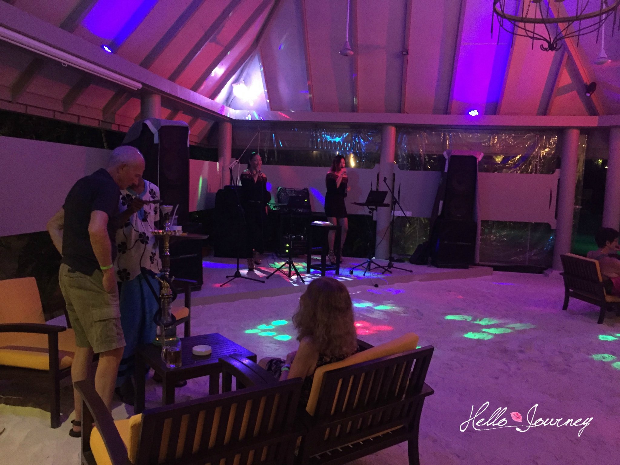 返航的时候听另一对说晚上九点在码头那边可以喂鱼,那时候还会有鲨鱼来,他们昨天就去了。今天被英国小伙喊了一路鲨鱼,于是决定一睹鲨鱼的真面目。时间还早,来中央酒吧听会儿音乐吧,顺便再喝一杯~ 一价全含就这点好处,随时随地可以喝一杯