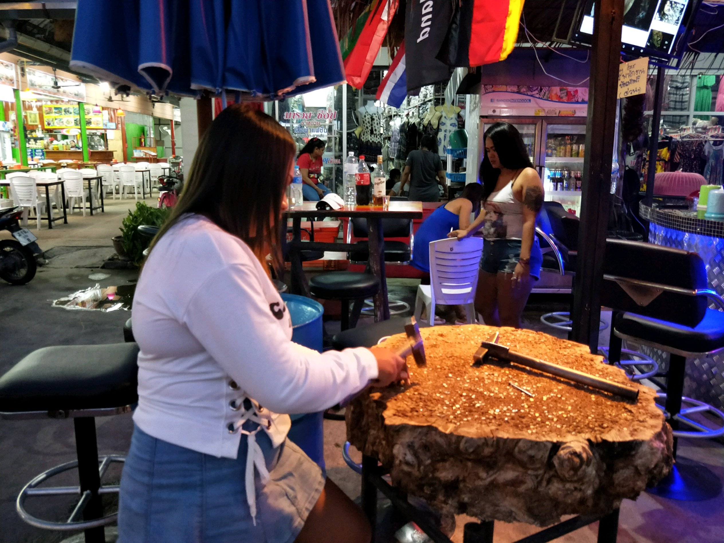 客人会跟她们玩砸钉子的游戏 反正我是搞不懂