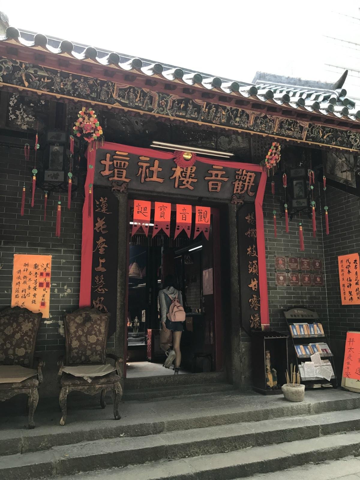 油麻地天后庙听说在每年度之“观音开库”宝诞,吸引大批善信前往参拜。我们去时香火应该说不是特别的旺也不是很冷清。天后宫门前有一块空地,有挺大的树,很多人会在这里坐坐,聊聊天,散散步。庙街靠近榕树头天后庙一带围栏墙根,聚集着二三十个算命看相摊档,有老秀才式的人物,有西装革履、配电脑的科学型人士,有专为浪漫小女生服务的“吉卜赛女郎”。我们也进去拜了下,虽然知道命运掌握在自己手中,但是拜拜神佛也能给心灵一点慰藉 ......